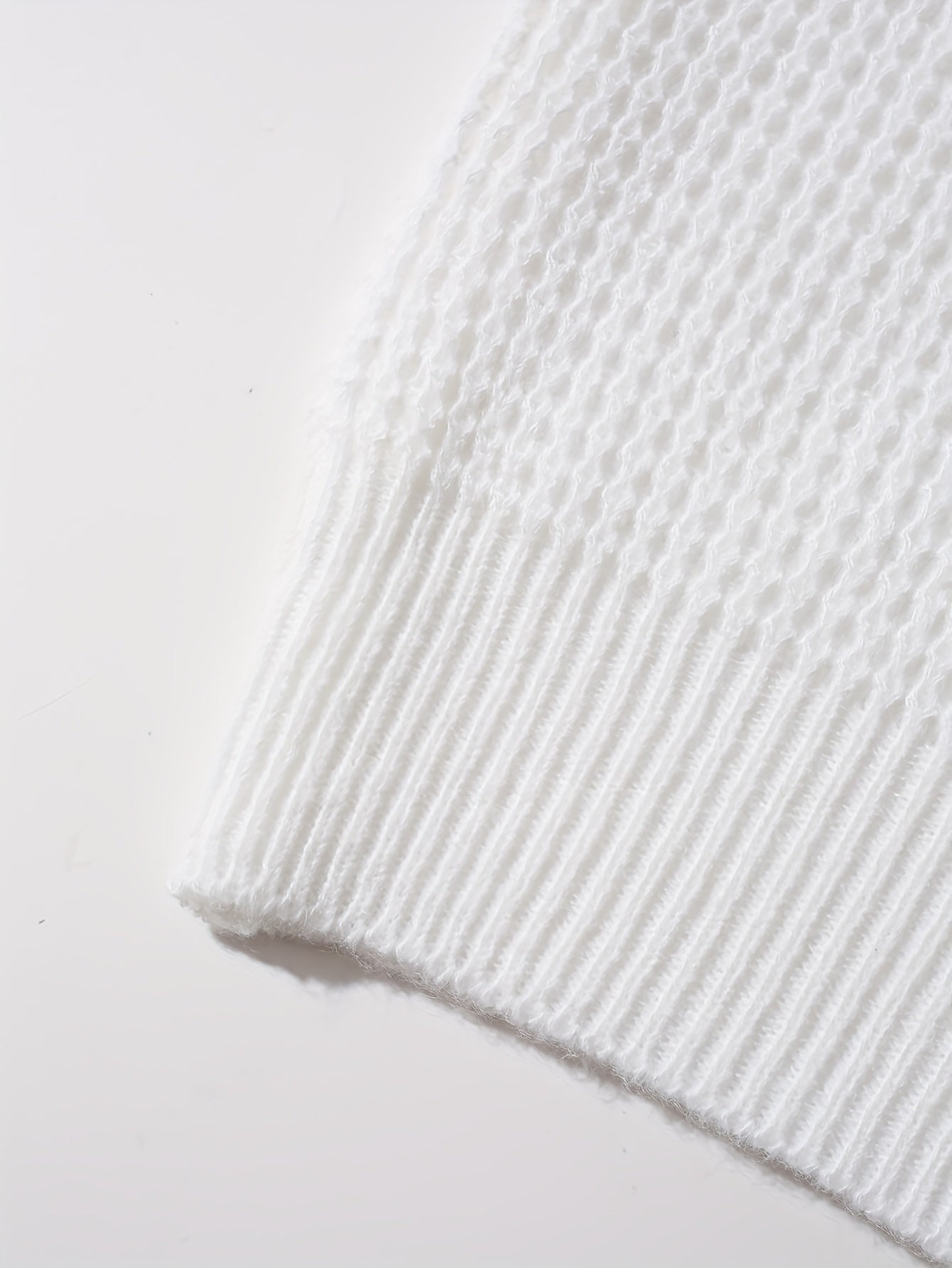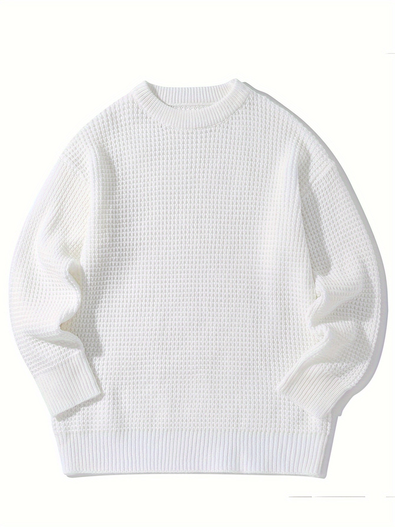 Elegant Polyester Sweater for Men - Casual Spring/Fall Long Sleeve Top, Solid Color, Knit Fabric, Adult Loose Fit, Round Neck, No Belt, Maturity Occasion - White / S is backordered and will ship as soon as it is back in stock.