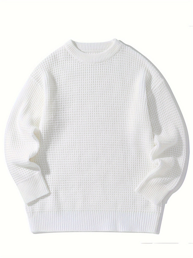 Elegant Polyester Sweater for Men - Casual Spring/Fall Long Sleeve Top, Solid Color, Knit Fabric, Adult Loose Fit, Round Neck, No Belt, Maturity Occasion