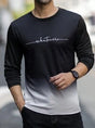 Manfinity Homme Men Round Neck Long Sleeve Gradient Print Letter Graphic Design Fitted Charming Casual T-Shirt, For Going Out, For Husband, Men's Fashion T-Shirt, Men's Graphic Tee, Ombre T-Shirt, Casual Men's Top