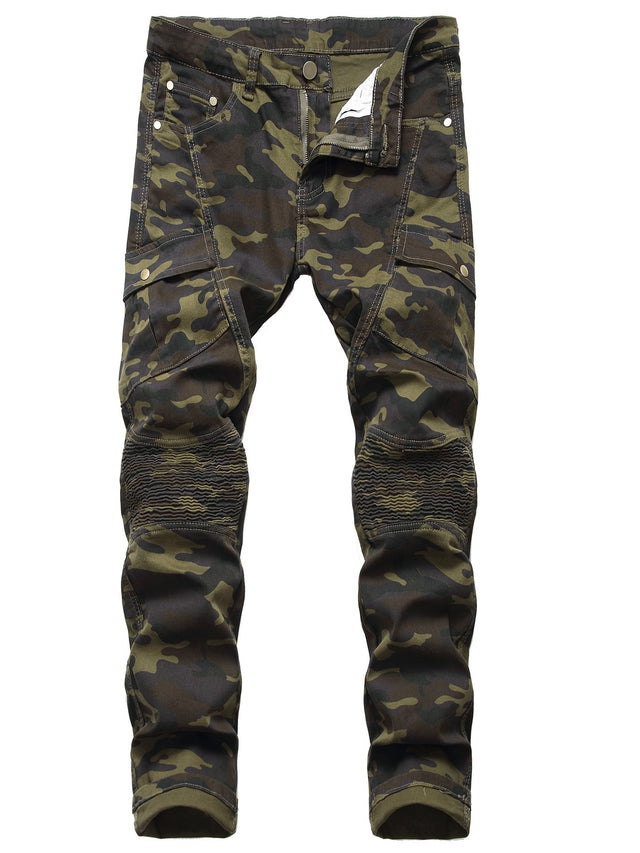Men's Slim Fit Stretch Jeans Distressed Straight Leg Denim Pants, Fashion Biker Jeans Ripped Skinny Jeans for Men Camouflage Cargo Pants