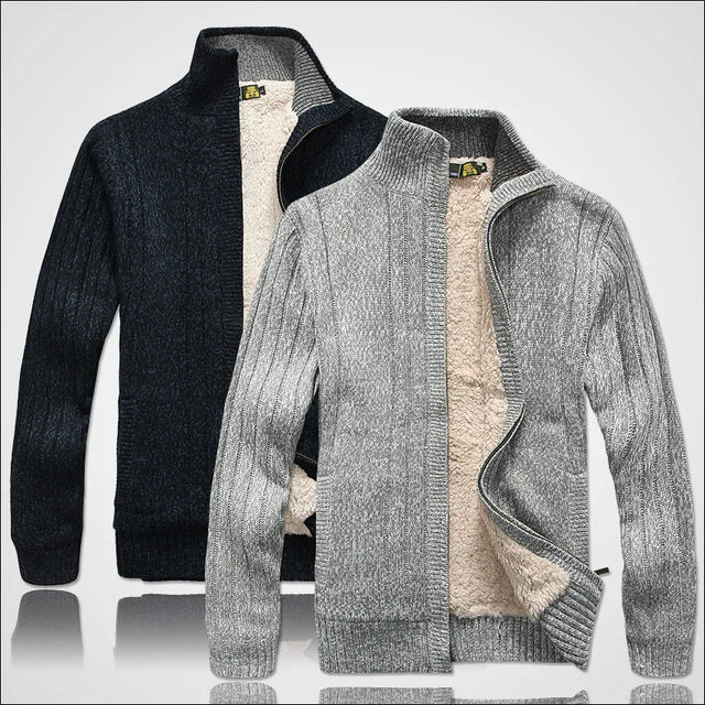 Men's Winter Sweater Male Clothes Thick Fleece Casual Cardigan Knitted Sweater for Men Coat Warm 2021