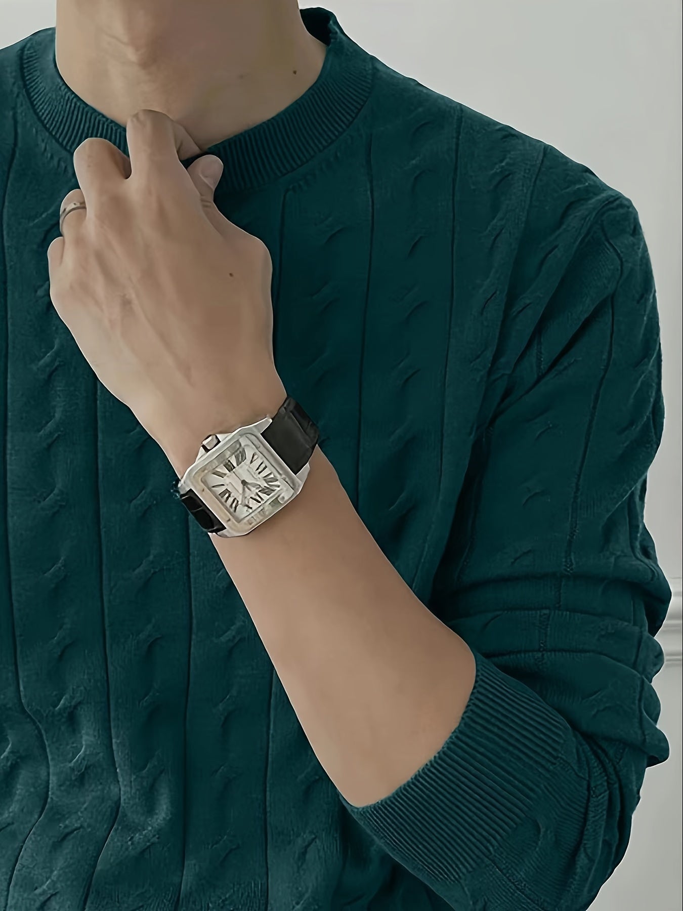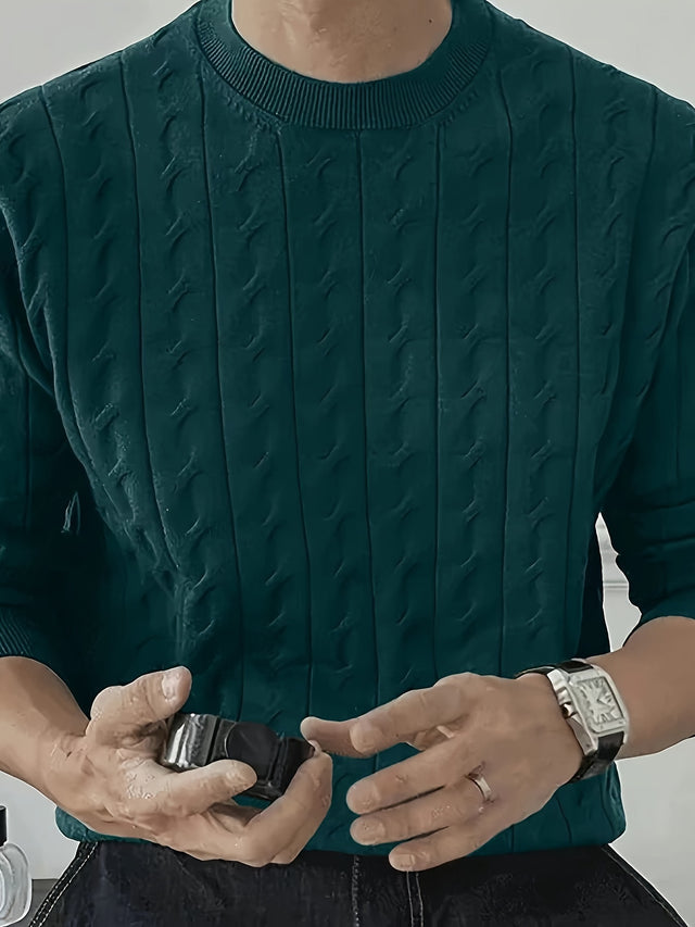 Polyester 100% Cable-Knit Sweater for Men - Crew Neck Pullover Top with Regular Long Sleeves, Medium Stretch Fabric for Daily & Casual Wear, Party-Ready, Four Seasons Knitwear, Universal Fit - (TongTongBang Selected)