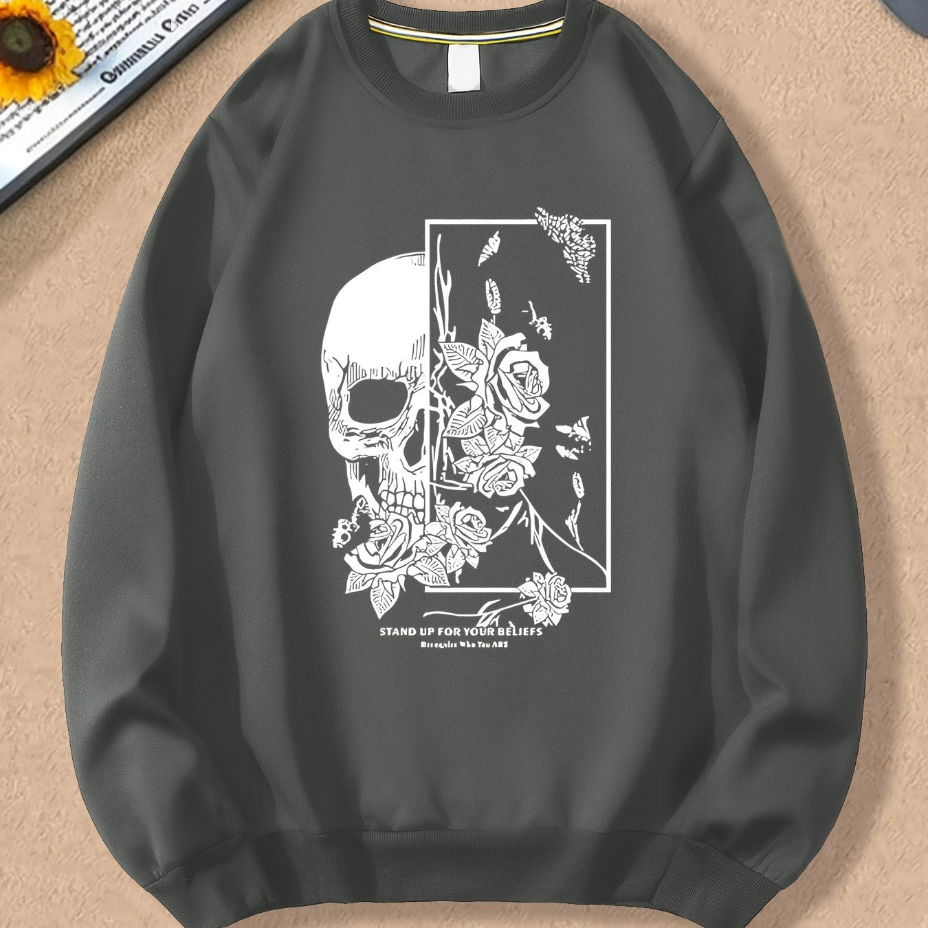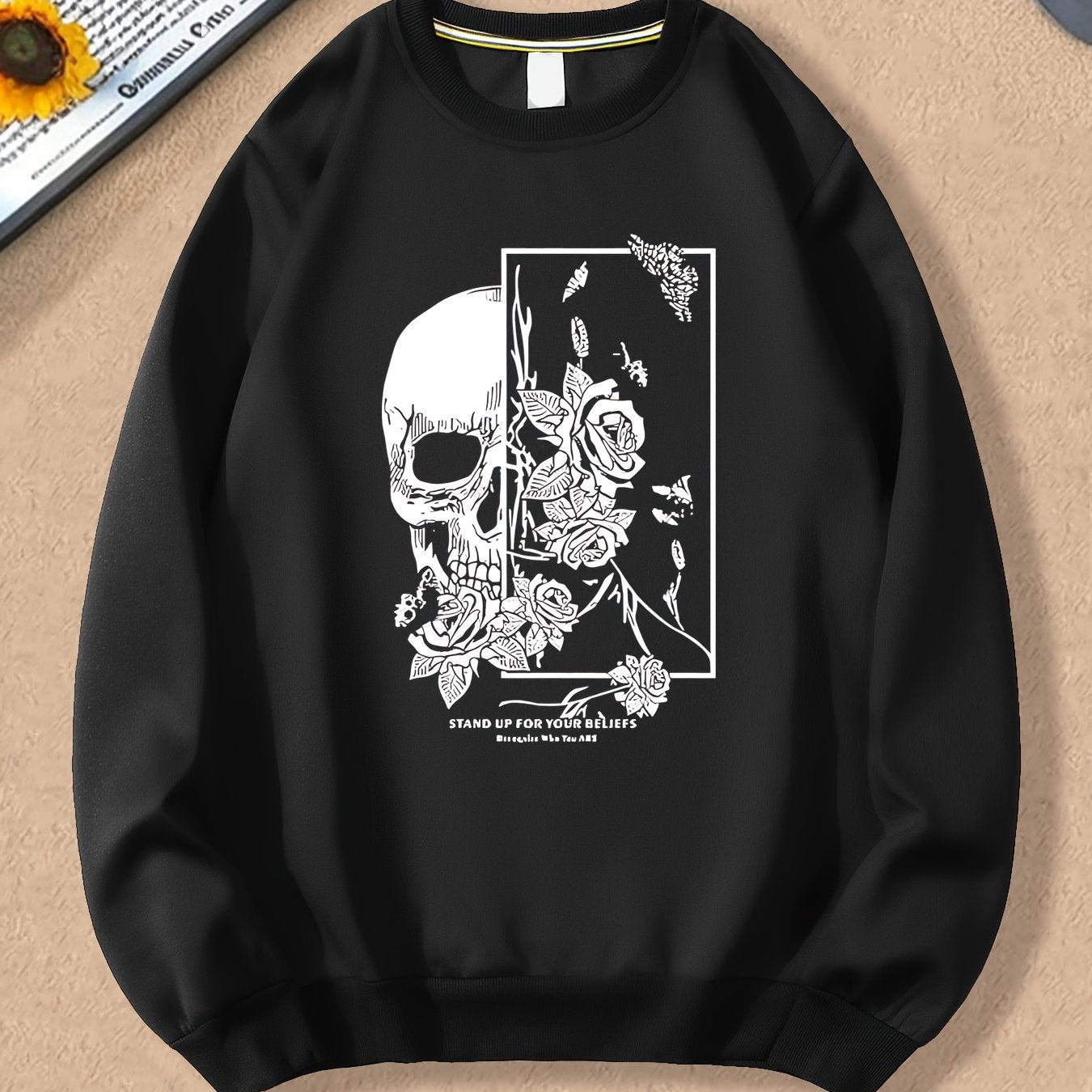 Spring And Autumn, Men'S Fashion Crew Neck Sweater, Skull Rose Letter Print Pattern, Outdoor Wear Inside And Outside With The Same Crew Neck Sweater For Men And Women