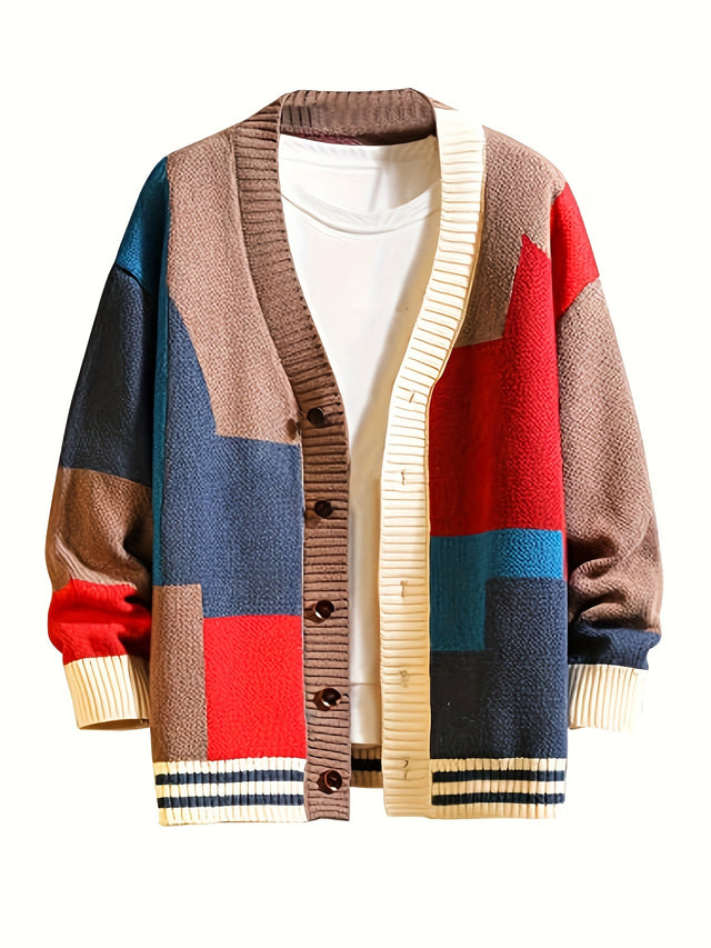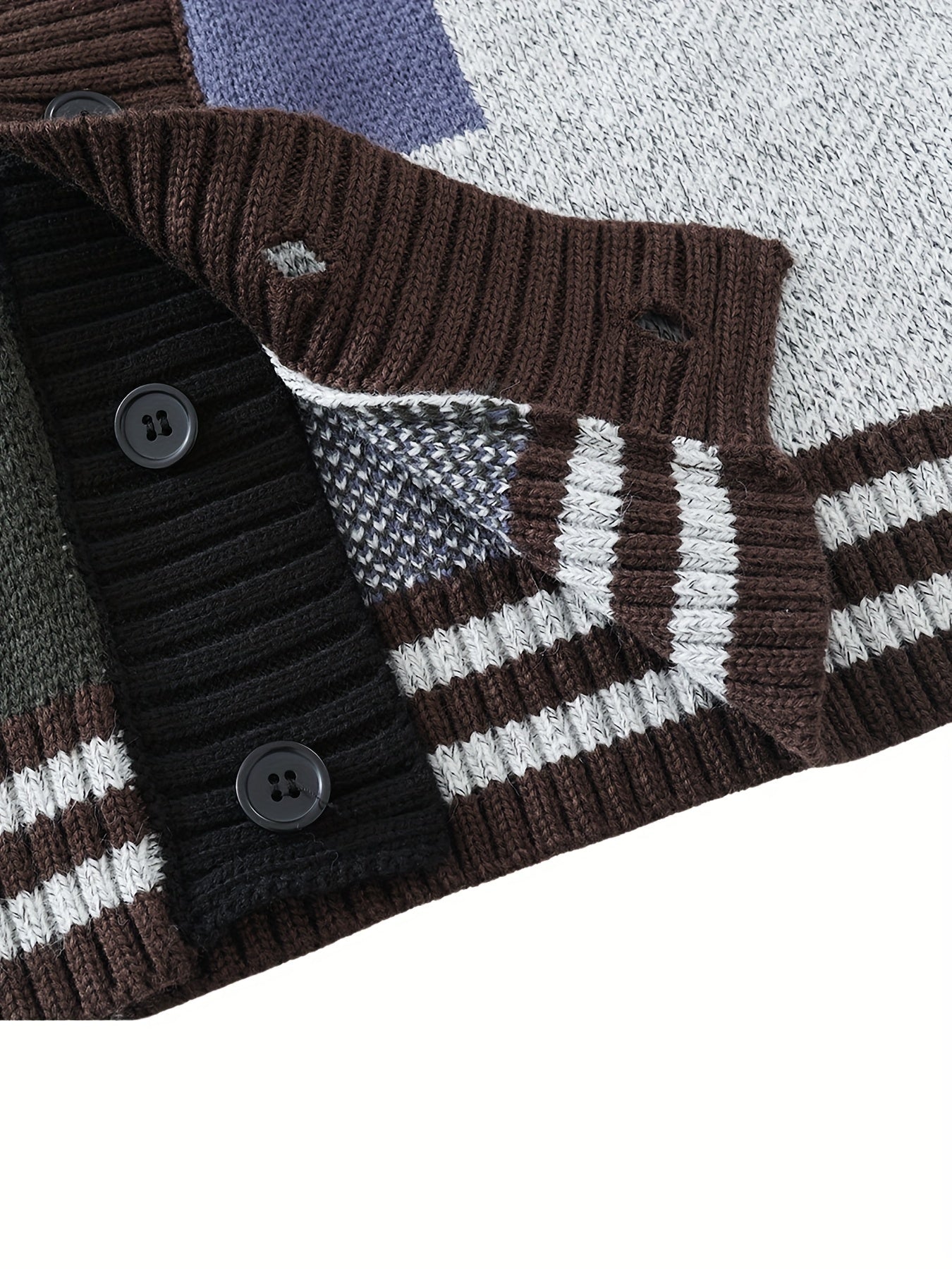 Spring & Autumn Color Spliced Knit Cardigan Sweater for Men & Women - V-Neck Casual Sweater