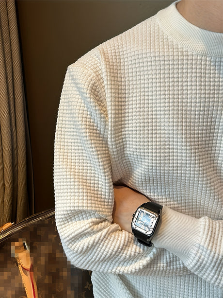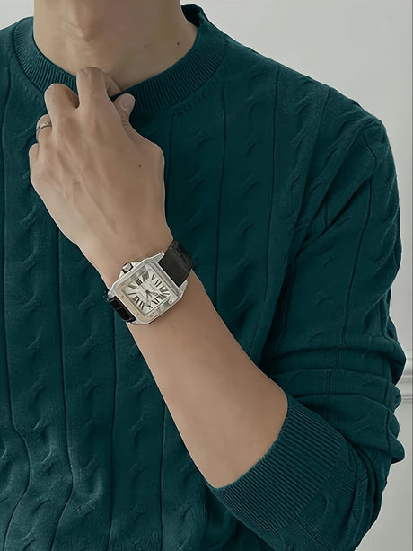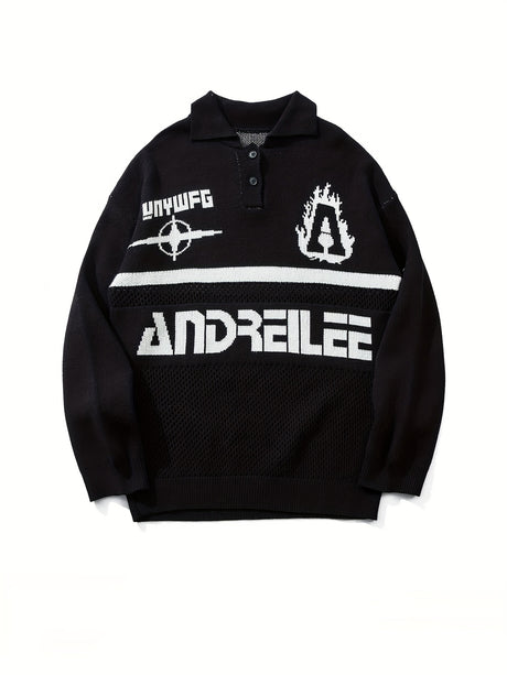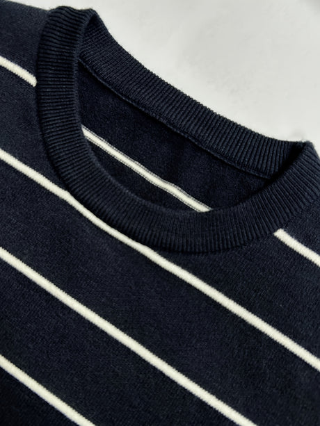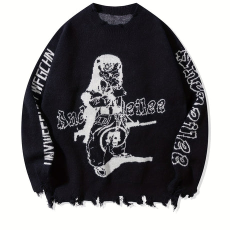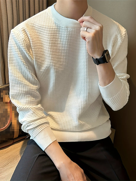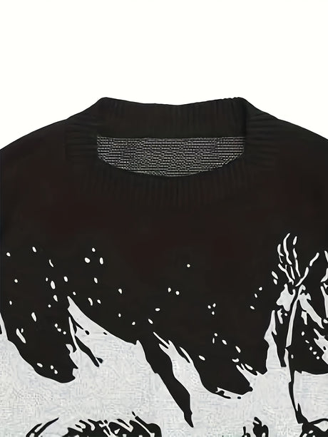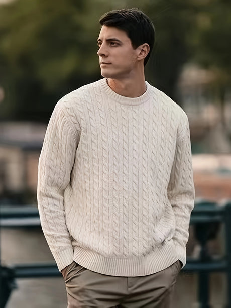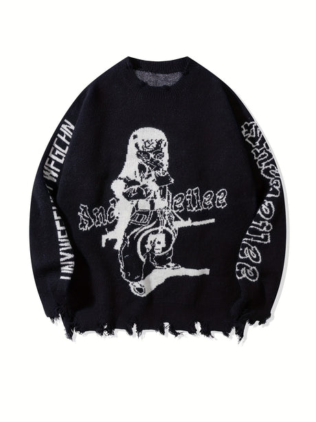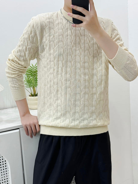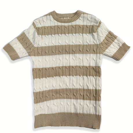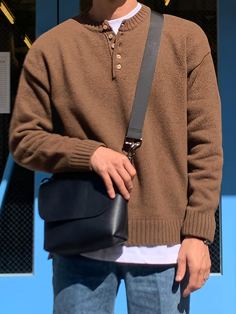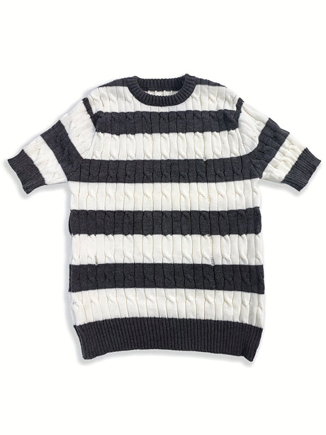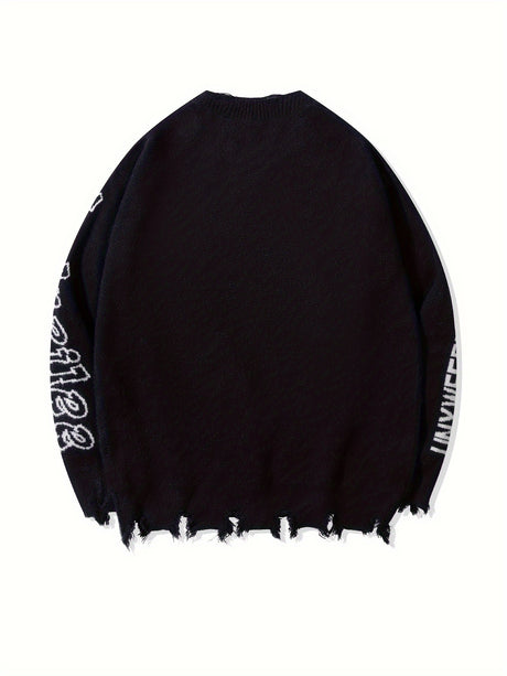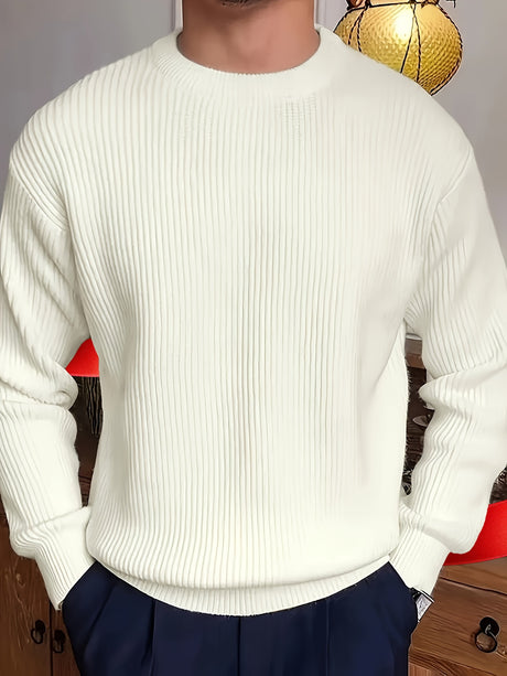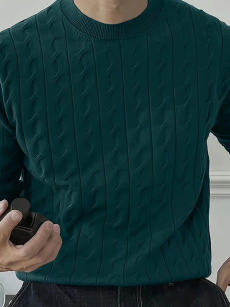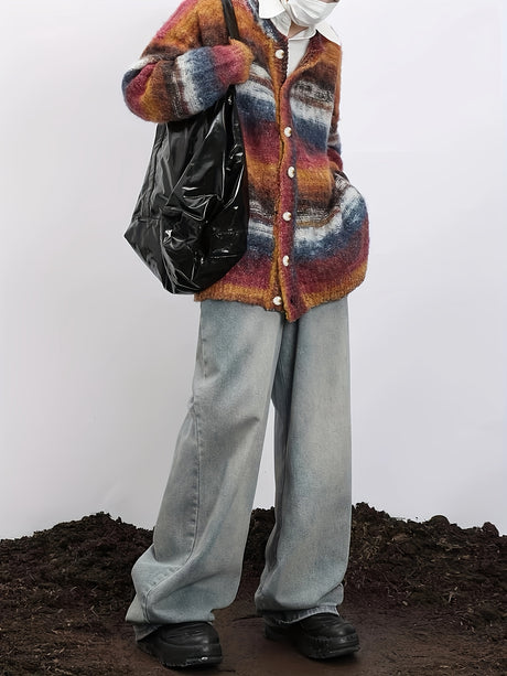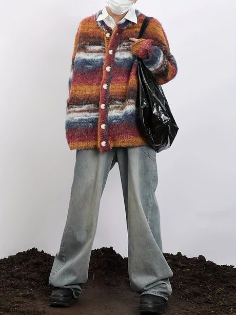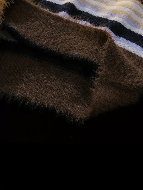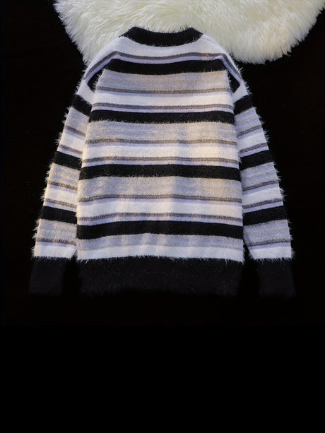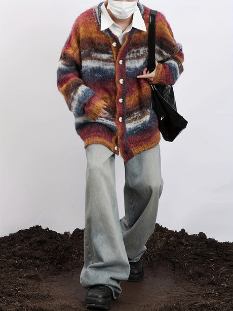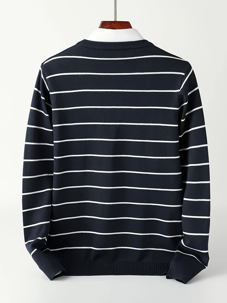 Cozy Striped Knit Sweater for Men - Casual Loose Fit, Color Block Design, Perfect for Fall/Winter