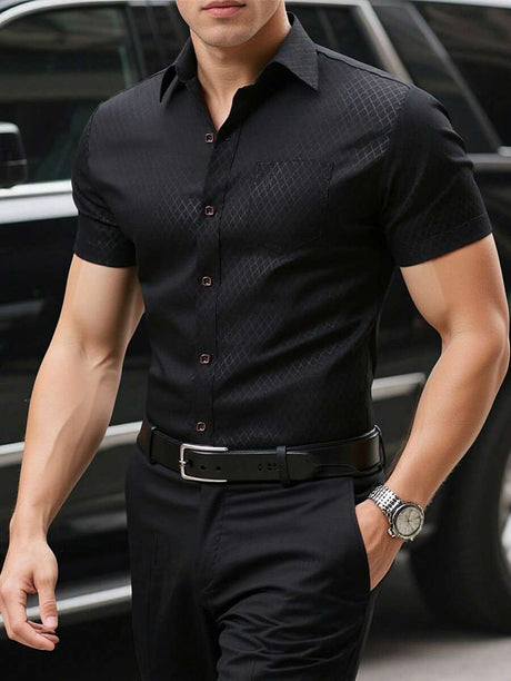 Manfinity Mode Men's Contrast Color Business Casual Shirt, Simple And Fashionable For Daily Wear
