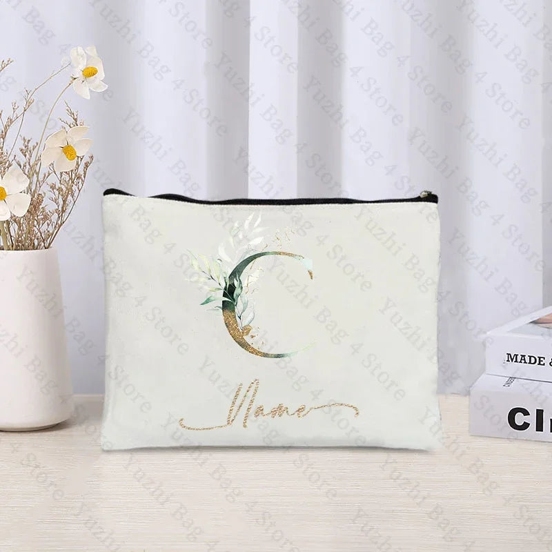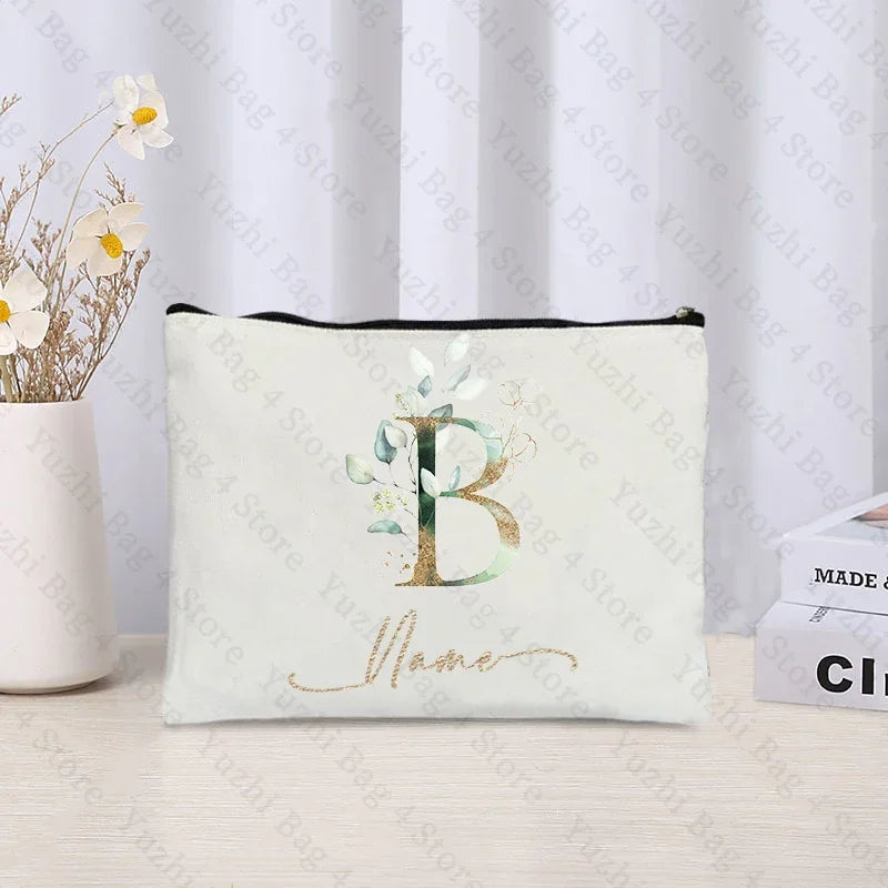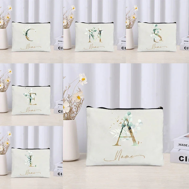 26 letters Flowers Custom Name Printed Makeup Bag Bridesmaid Wedding Makeup Box Gift Organizer Travel perfume Toilet Side Bag