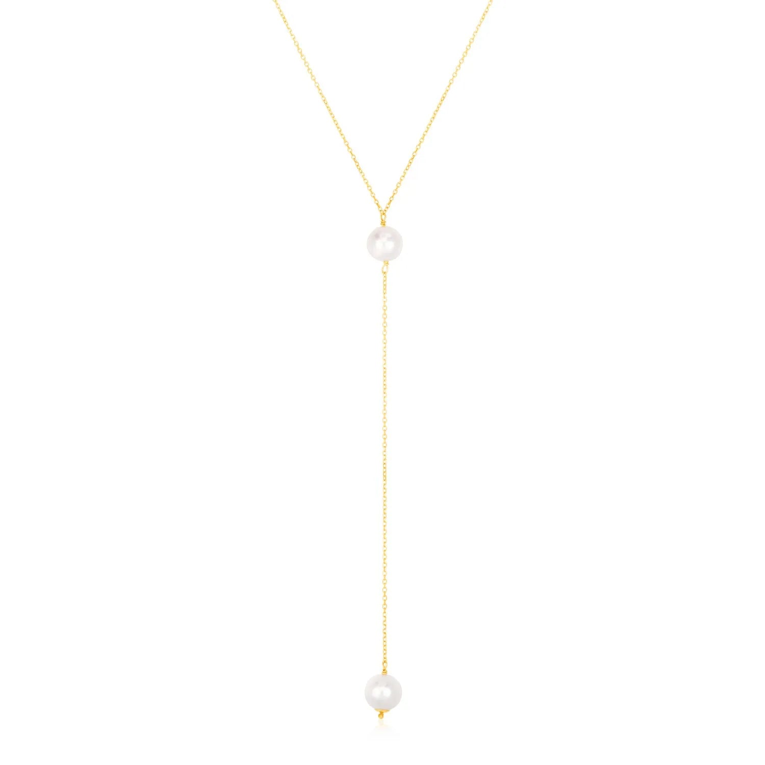 UD2 14k Yellow Gold Lariat Necklace with Pearls Elegant Pearl Necklaces Collection