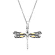 " The simple bail provides a beautiful contrast to the exquisitely designed dragonfly with 18k yellow gold and scrollwork wings of this pendant. Crafted in fine sterling silver.
