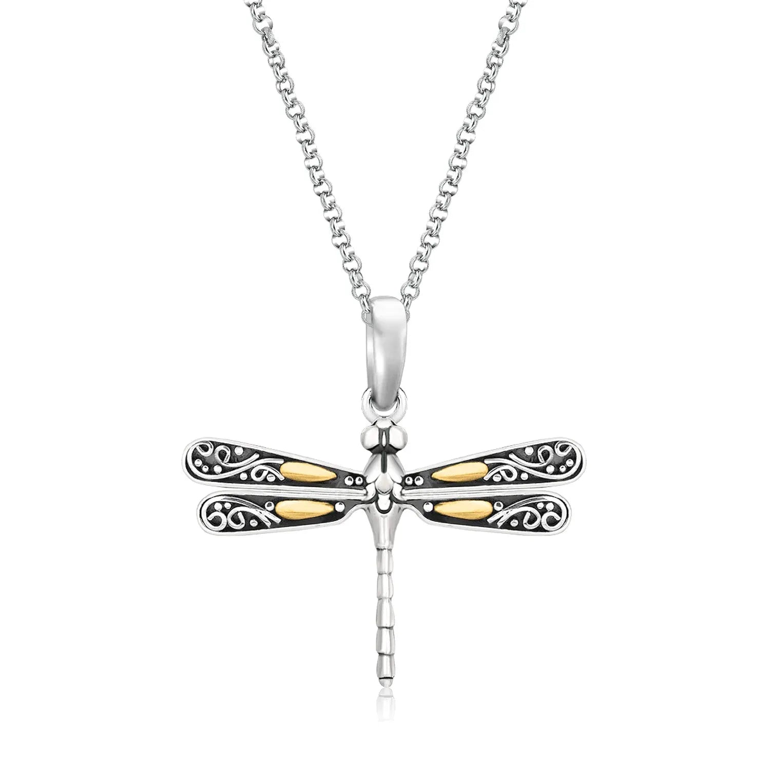 UD2 Dragonfly Design Pendant 18K Yellow Gold and Sterling Silver Necklace Fashion Accessory