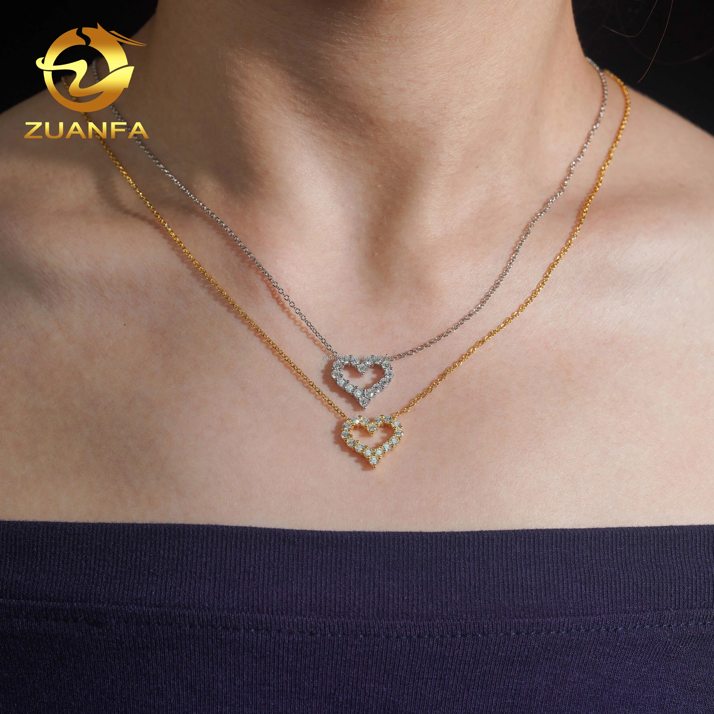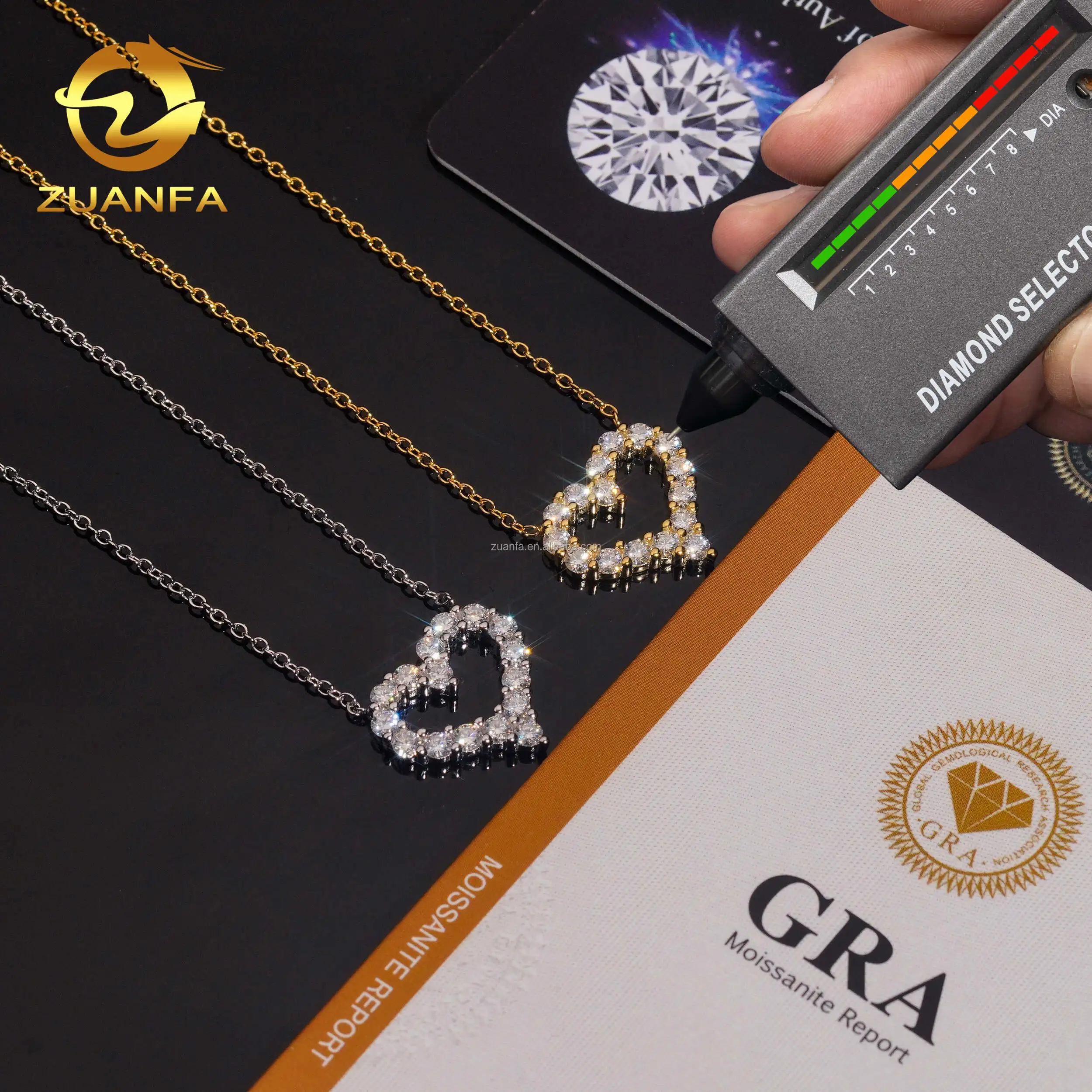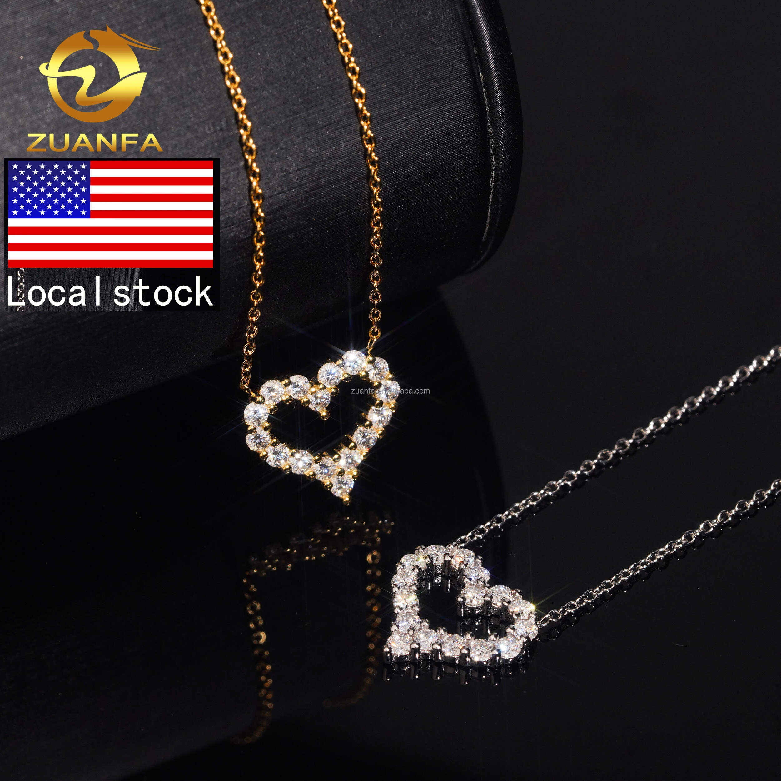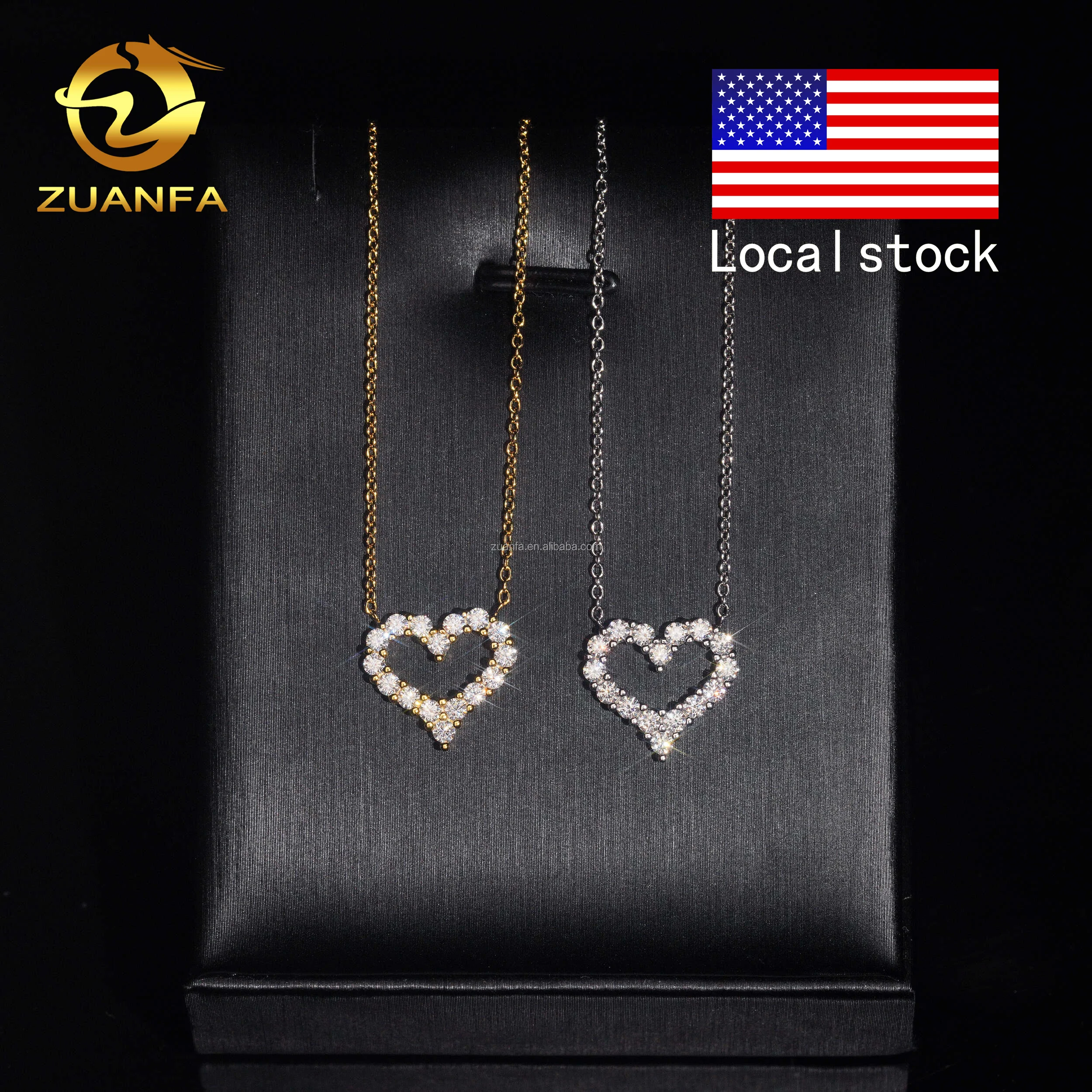 USA Local Stock Fast Shipping Small Heart Charms 925 Silver Moissanite Pass Diamond Test Gold Plated Heart Necklace for Women