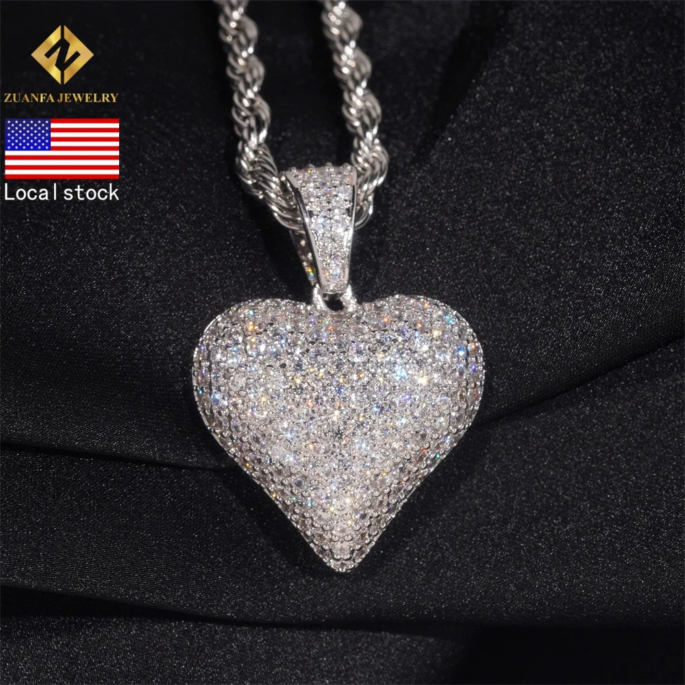 USA Stock Fine Jewelry Hip Hop VVS Diamond Necklace Solid 925 Sterling Silver Moissanite Iced Out Heart Pendant