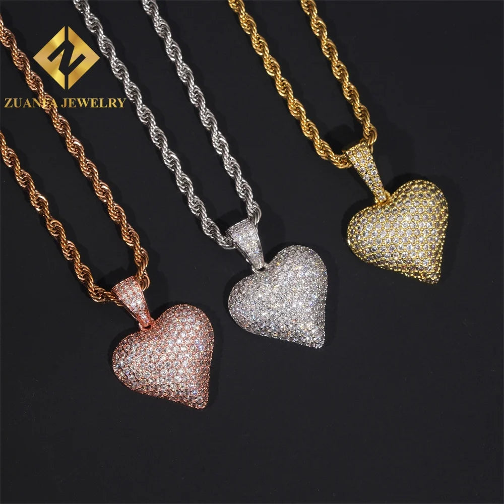 USA Stock Fine Jewelry Hip Hop VVS Diamond Necklace Solid 925 Sterling Silver Moissanite Iced Out Heart Pendant - Silver is backordered and will ship as soon as it is back in stock.