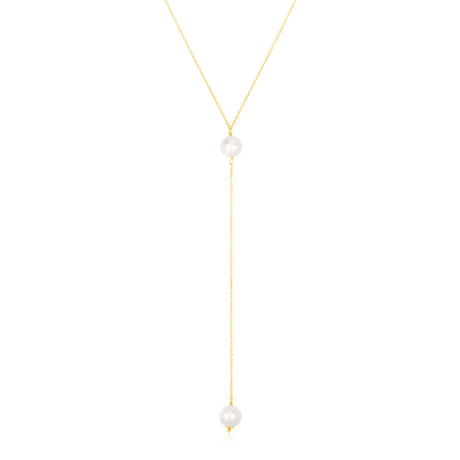 UD2 14k Yellow Gold Lariat Necklace with Pearls Elegant Pearl Necklaces Collection