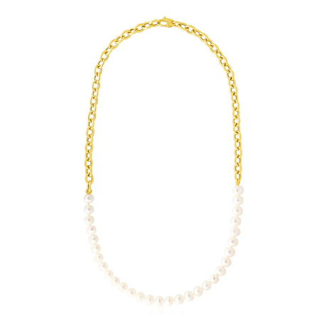 UD2 14k Yellow Gold Necklace with Pearls Elegant Oval Chain & Pearls for Women