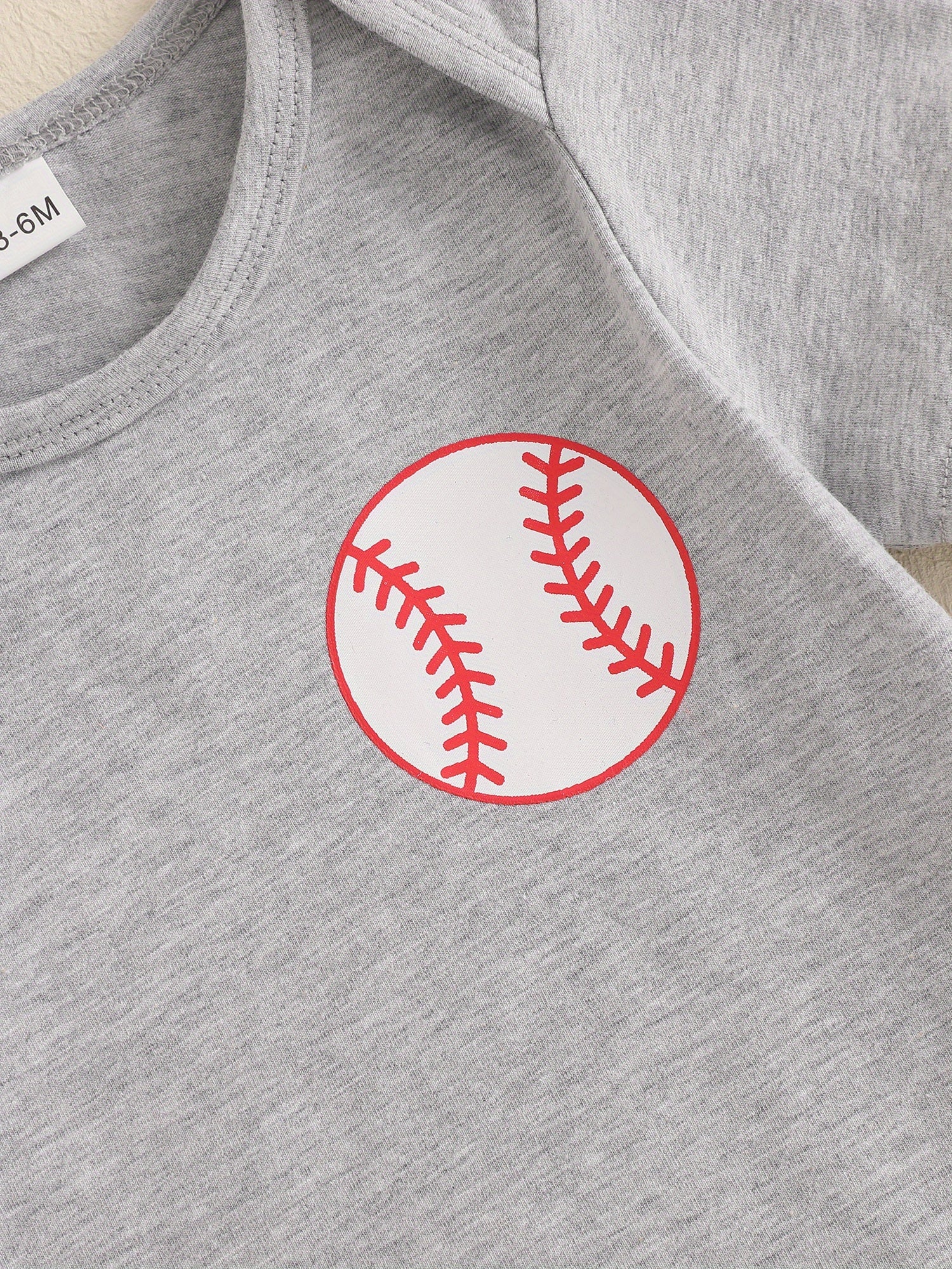 0-18 Months Baby Boy Summer Outfits Short Sleeve Romper Baseball Pants Hat Set, for Outdoor - grey / 0-3M is backordered and will ship as soon as it is back in stock.
