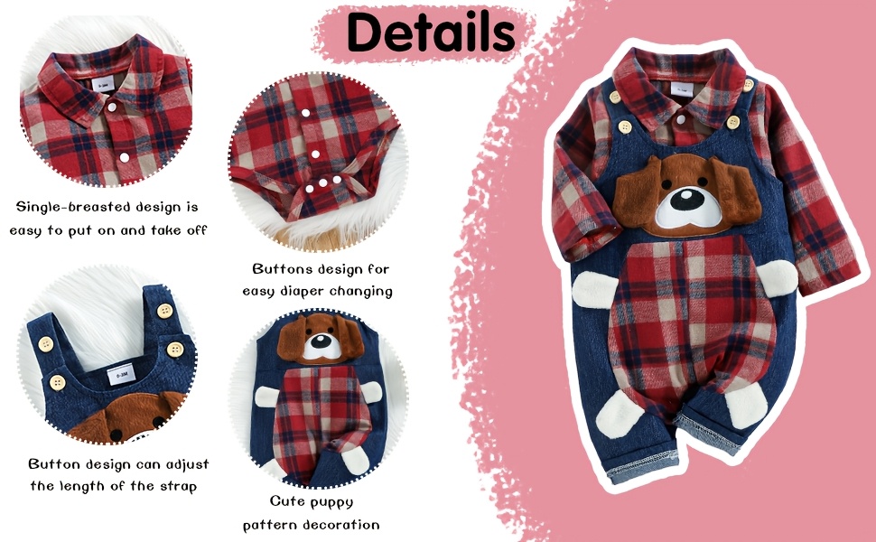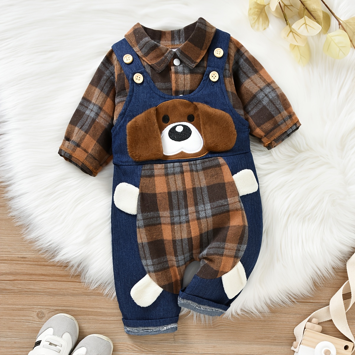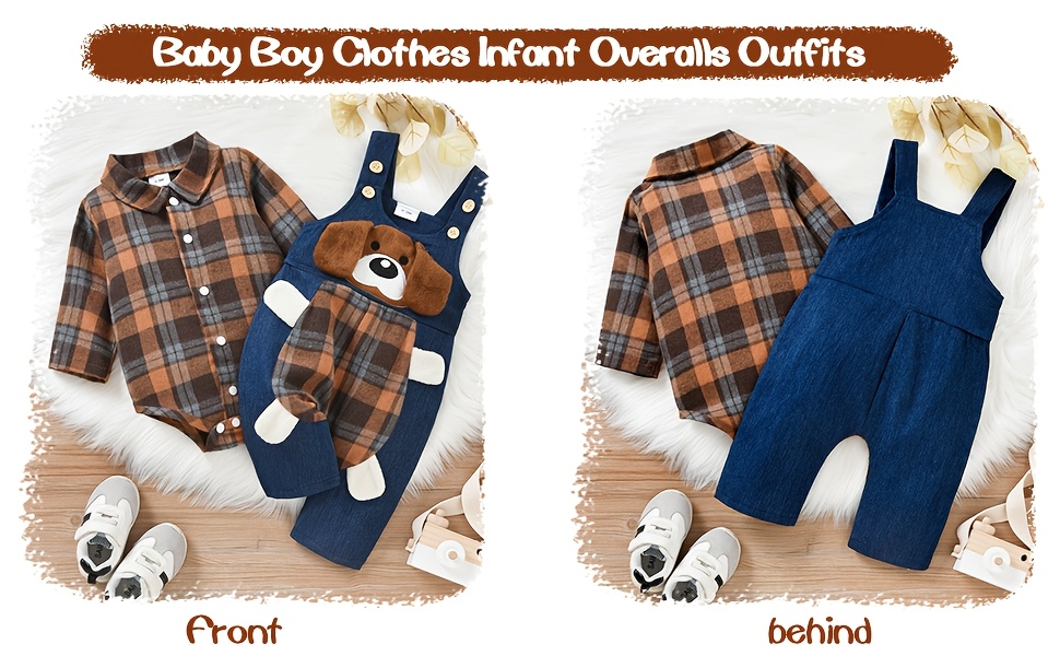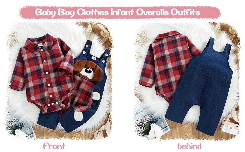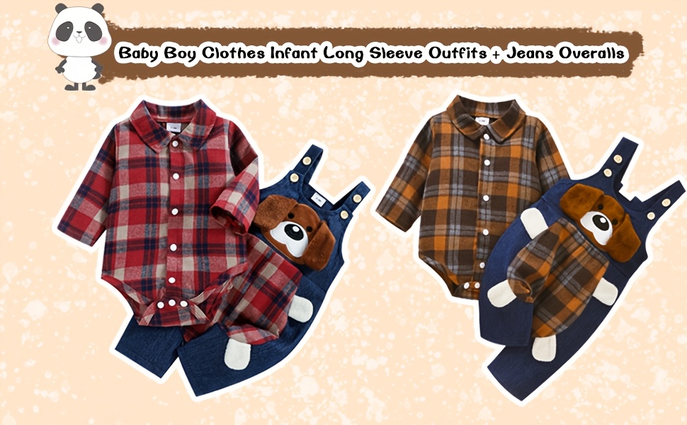 Baby Boy Clothes Infant Outfits Long Sleeve Plaid Bodysuit Romper + Jeans Overalls Jumpsuit Pants Sets 0-18 Months