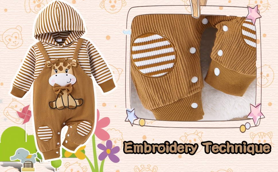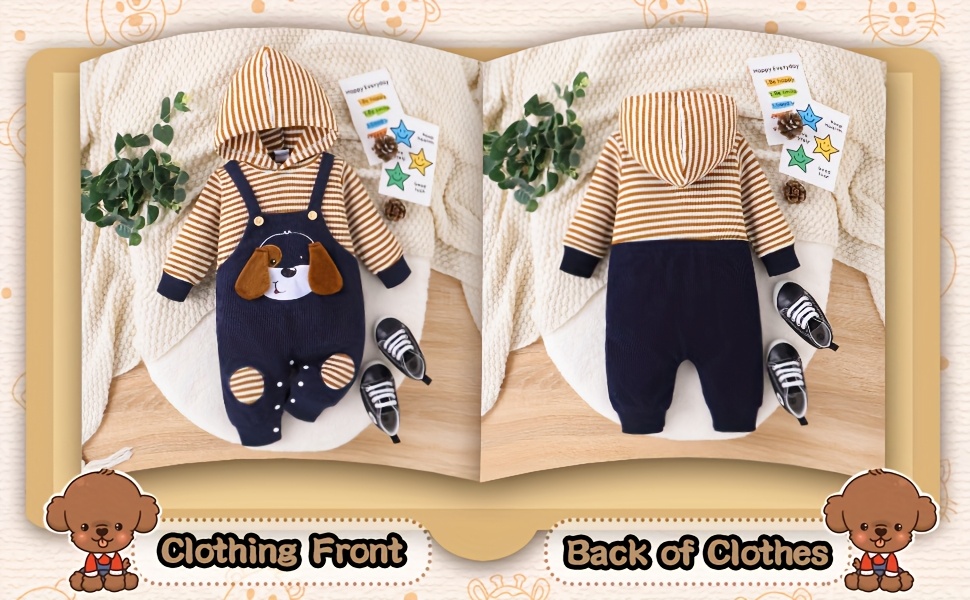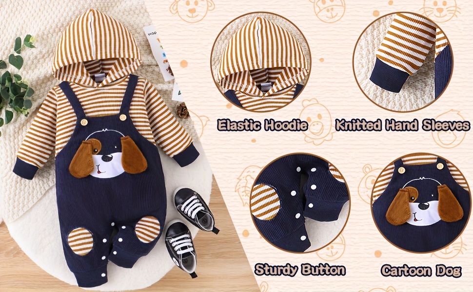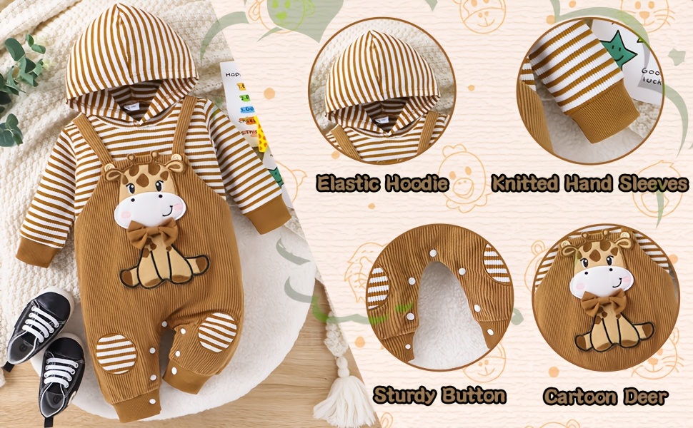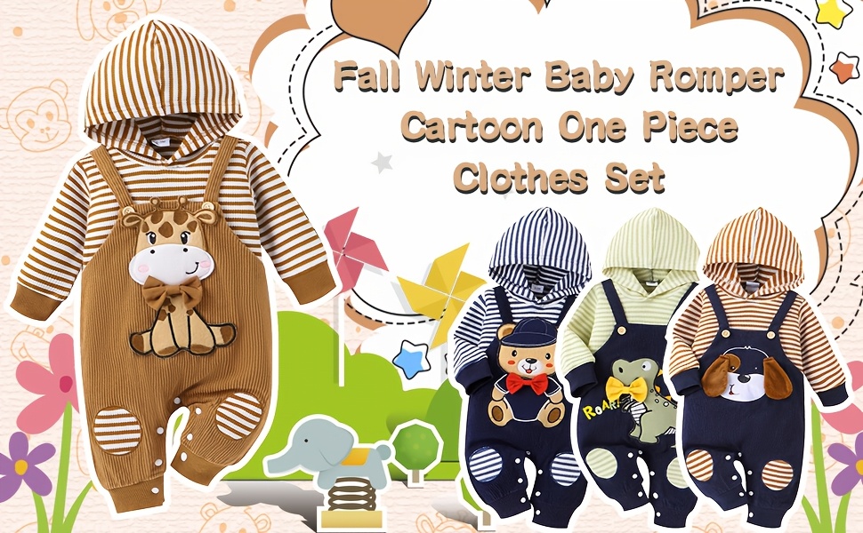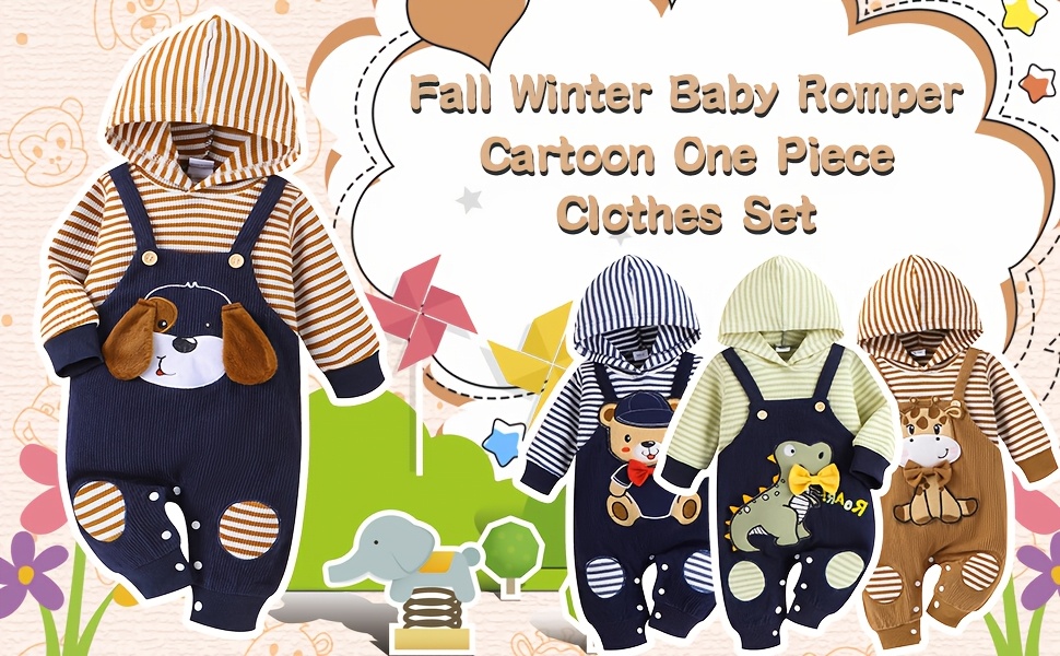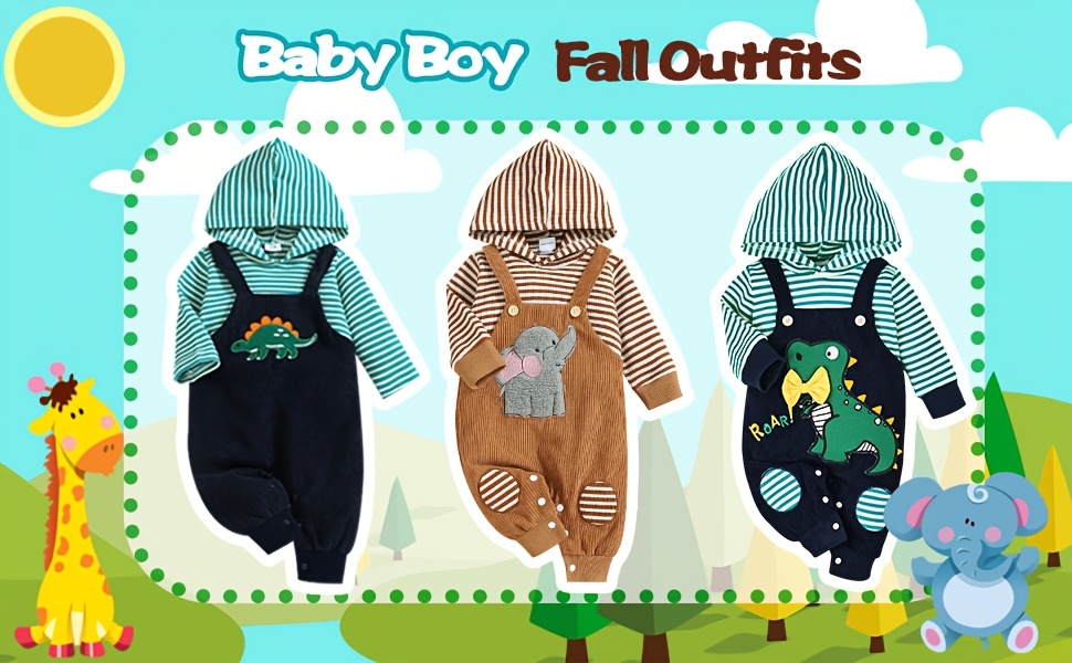 Baby Boy Clothes Newborn Outfits Infant Fall Winter Long Sleeve Cartoon Romper Bodysuit+ Pocket Pants Set 0 Months-18 Months, for Outdoor - Sepia / 0-3M is backordered and will ship as soon as it is back in stock.
