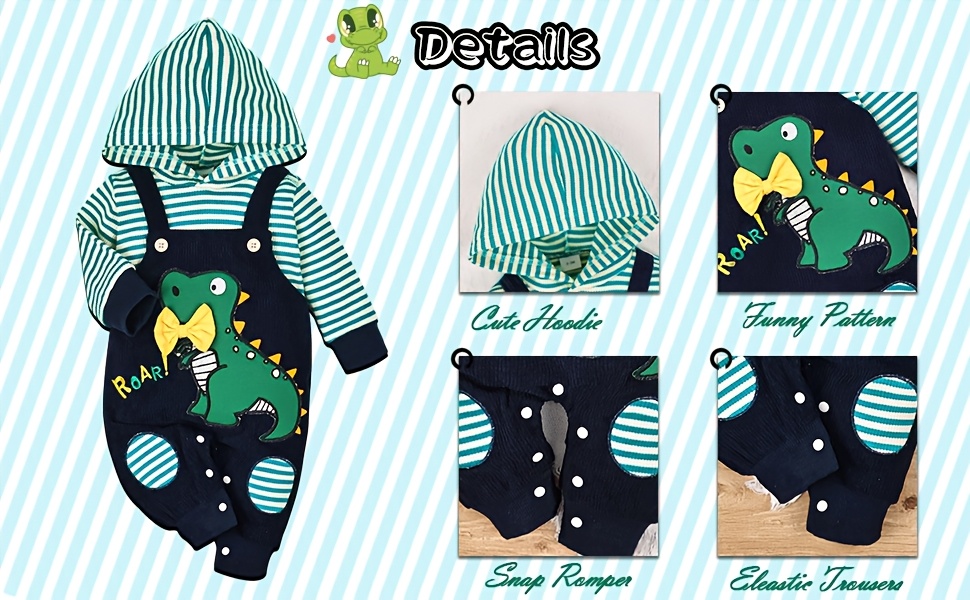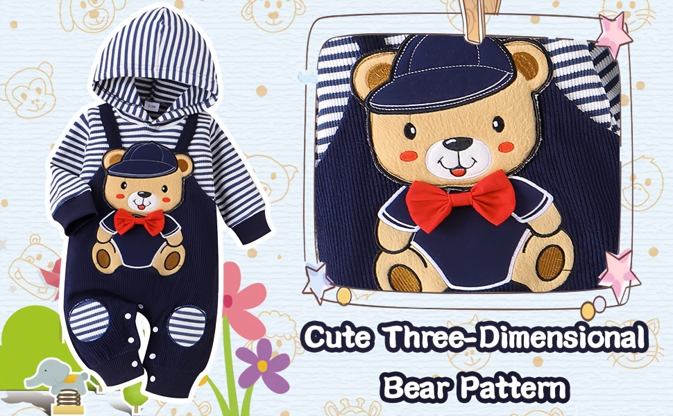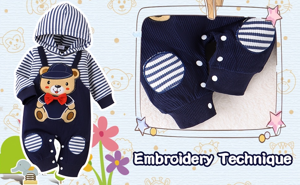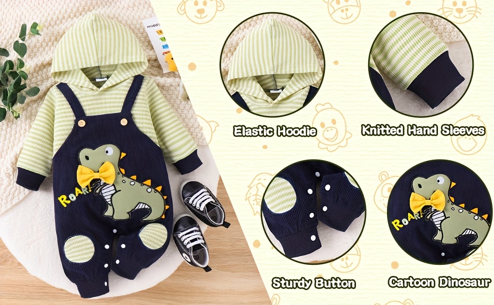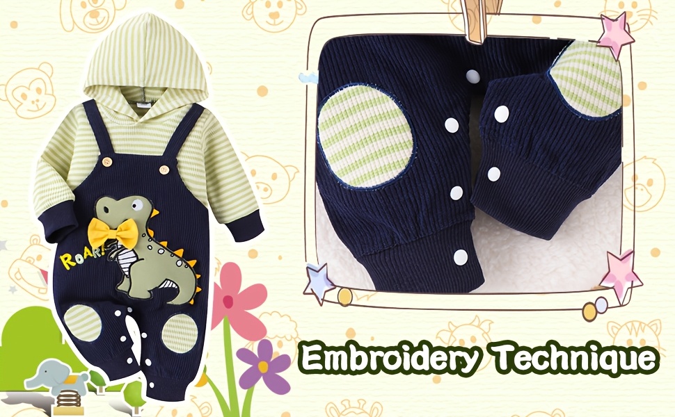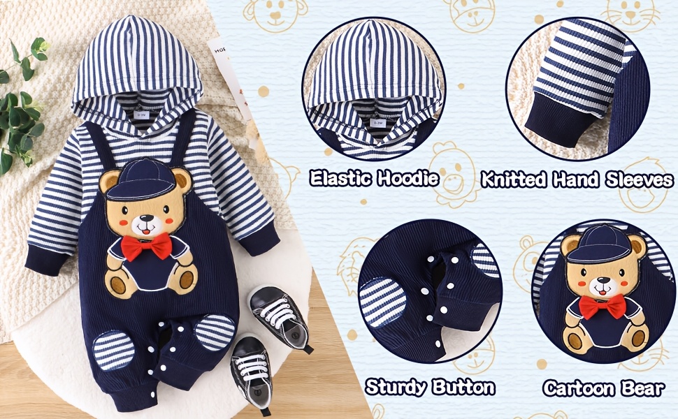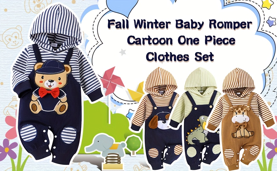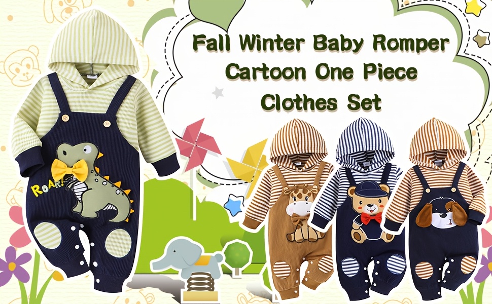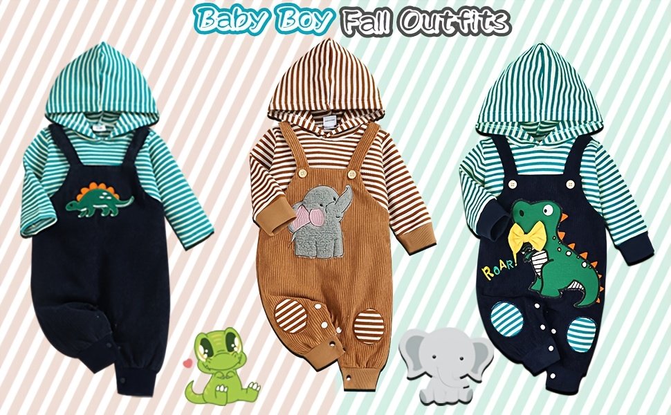Baby Boy Clothes Newborn Outfits Infant Fall Winter Long Sleeve Cartoon Romper Bodysuit+ Pocket Pants Set 0 Months-18 Months, for Outdoor