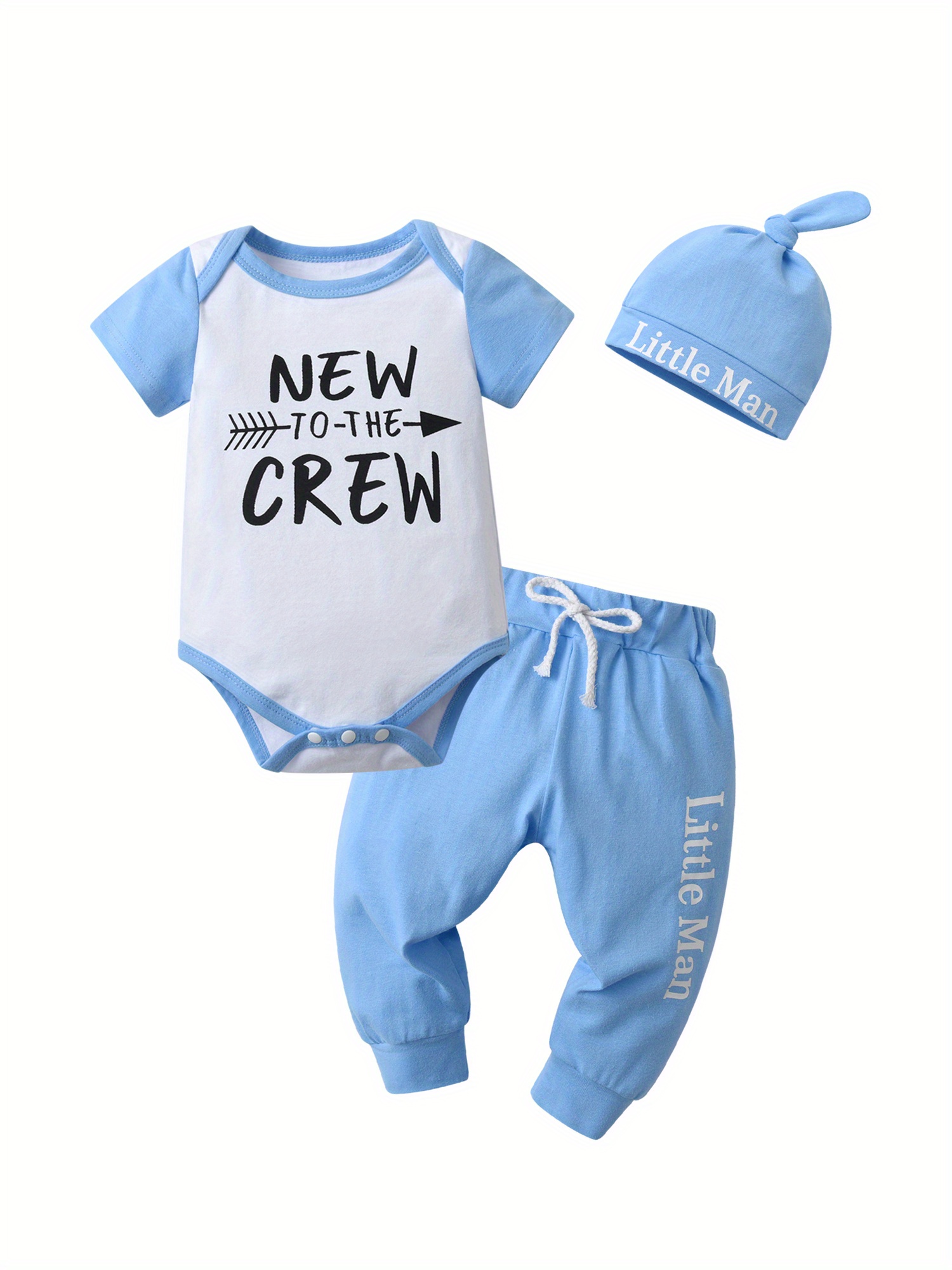 KuKitty 3pcs Newborn infant Baby Boy Summer Clothes Printed Short Sleeve Bodysuit Top and Long Pants with Hat Outfit Set for Boys Babies