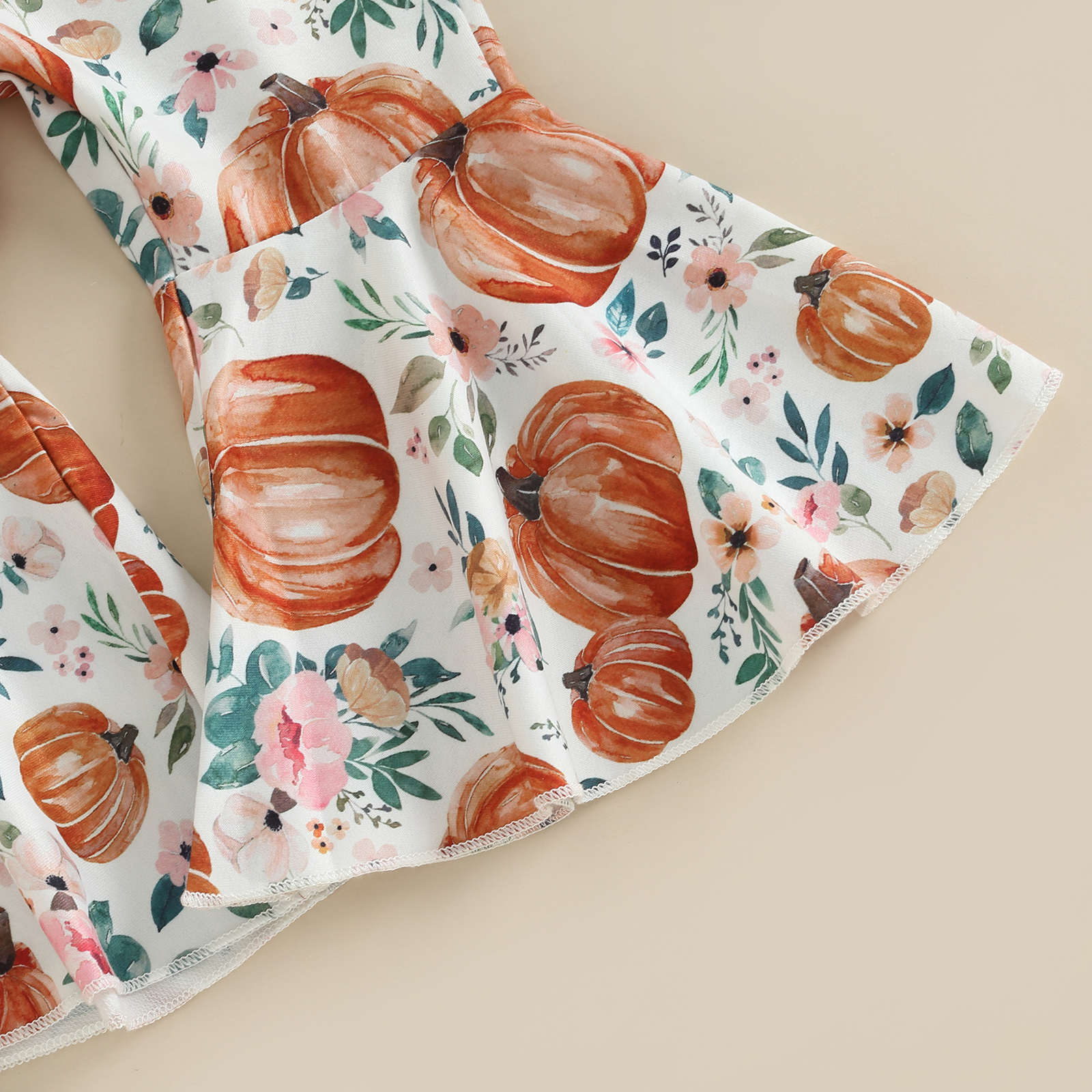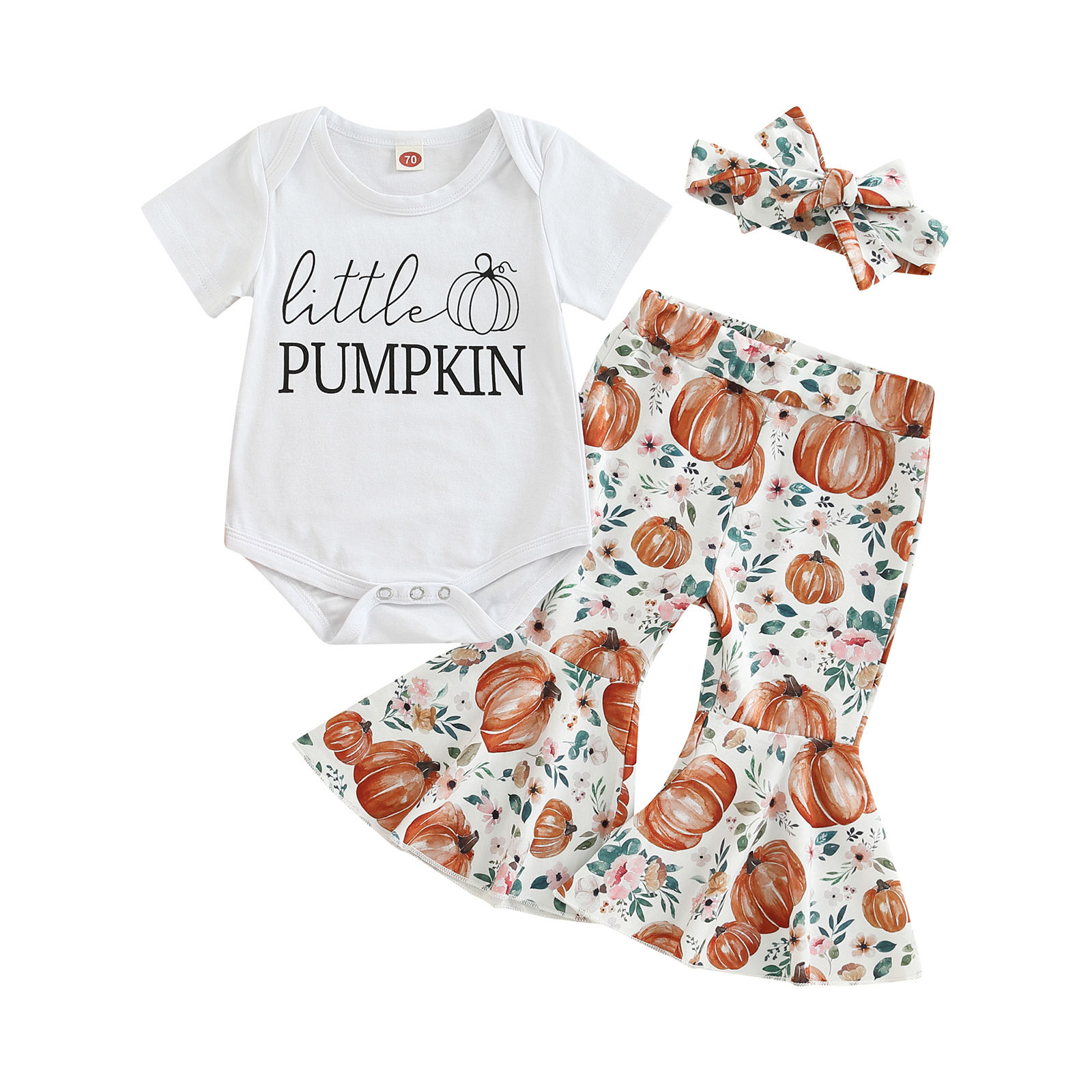 3pcs Pumpkin Floral Print Baby Girl Set: 3-Piece Romper, Bodysuit, Pants & Headband