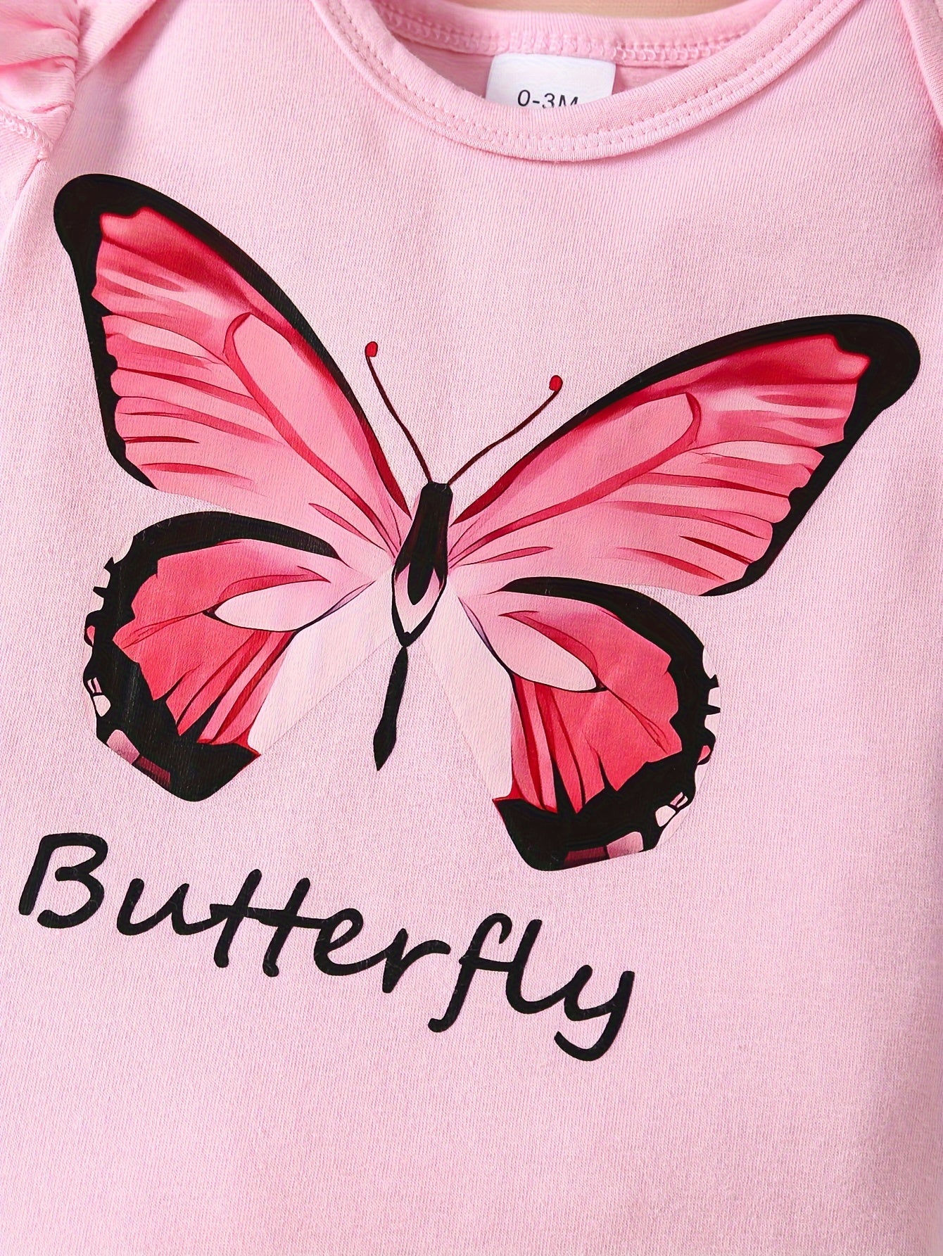 Baby Girl Butterfly Pattern Onesie, bow lace shorts, hair band three-piece set - Pink Red / 3-6M is backordered and will ship as soon as it is back in stock.