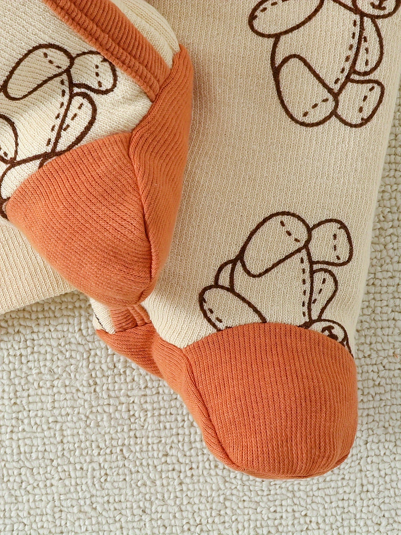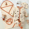 Baby Girl Romper Cute Bear Print Outfits, One-piece Romper + Hat + Baby Bib + Baby Blanket Four-piece Indoor And Outdoor Set - Orange / 1-3M is backordered and will ship as soon as it is back in stock.