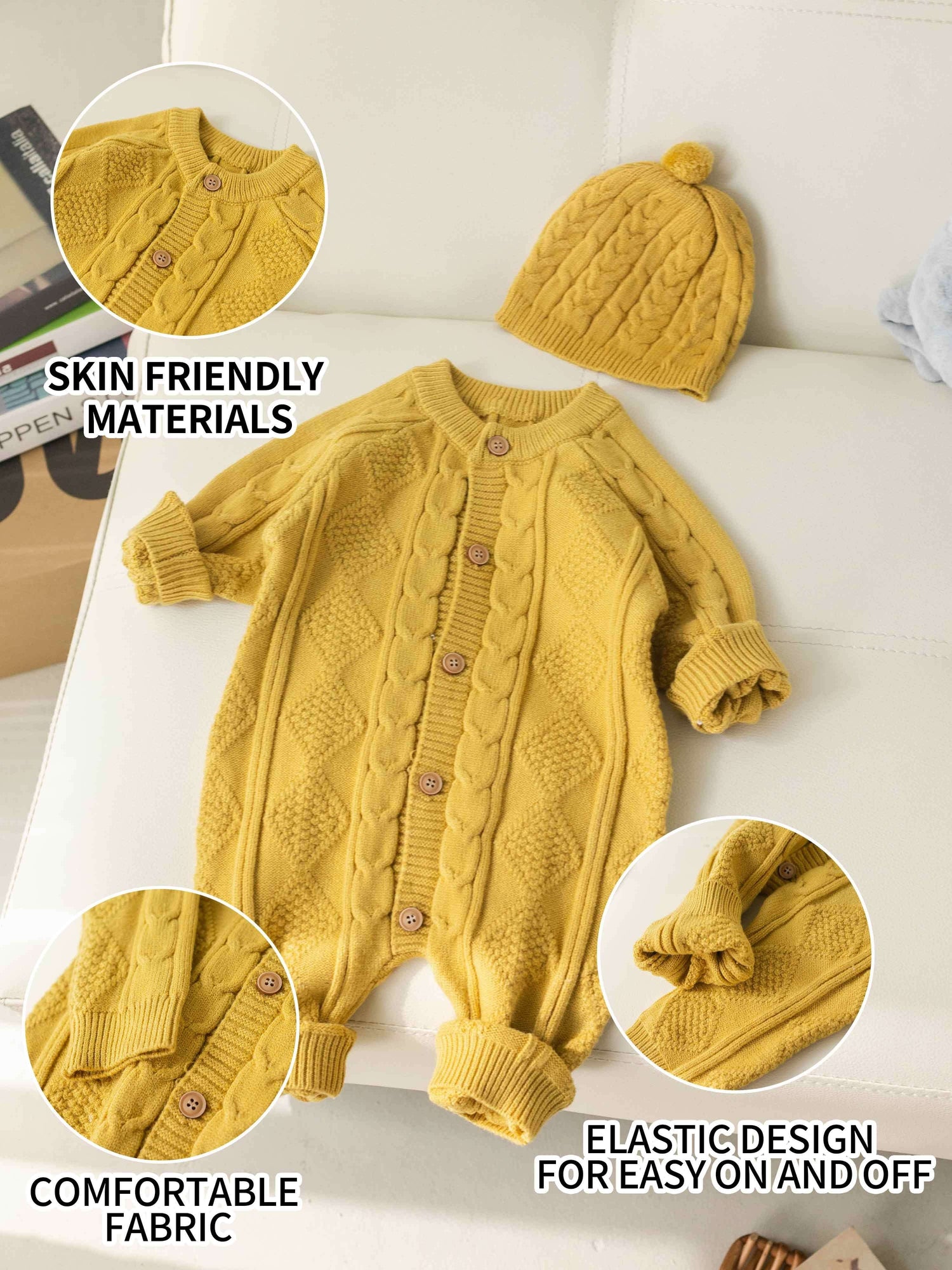 Newborn Baby Girl Boy Outfits Clothes, Warm Knit Sweater Cardigan For Winter, Fall, Spring - Yellow / 3-6M is backordered and will ship as soon as it is back in stock.