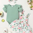 Newborn Baby Girl Clothes Infant Dress Outfit Summer Romper Flower Print Jumpsuit Headband Overall Skirt Clothing Set - Green / 0-3M is backordered and will ship as soon as it is back in stock.