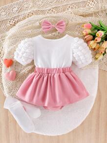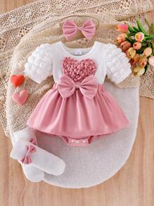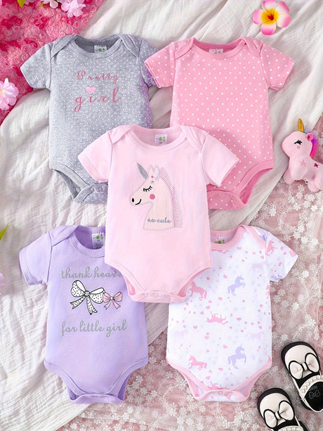 4pcs/Set Infant Short Sleeve Bodysuit 0-1 Year Old Baby Girl Cute Set