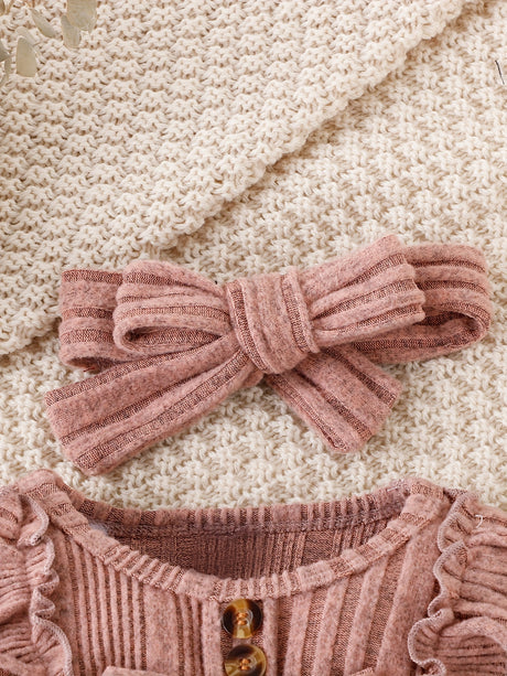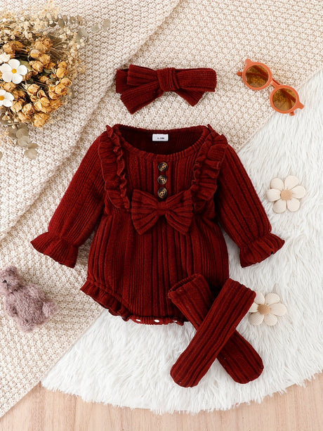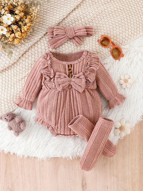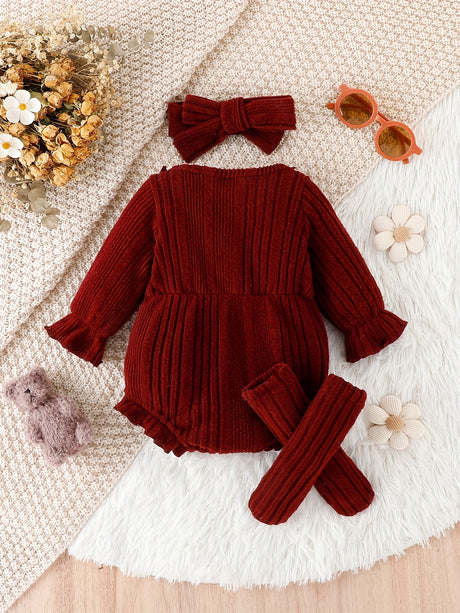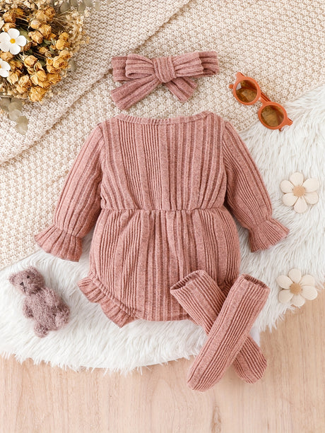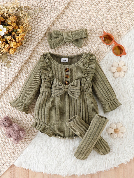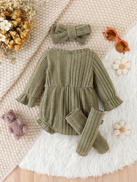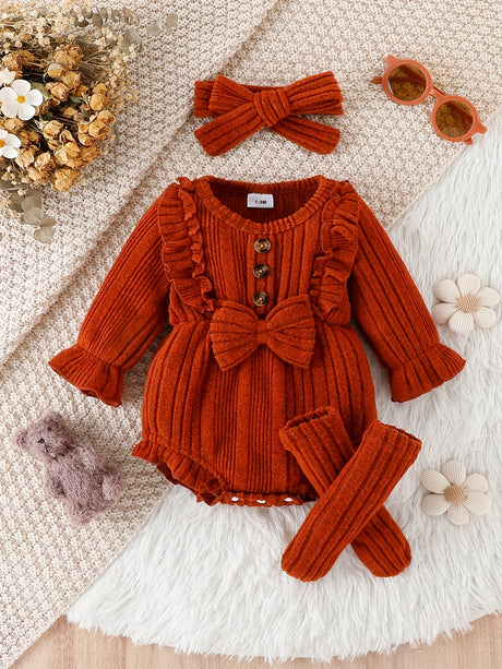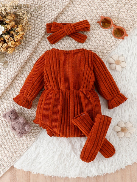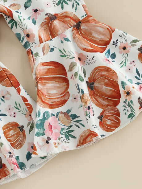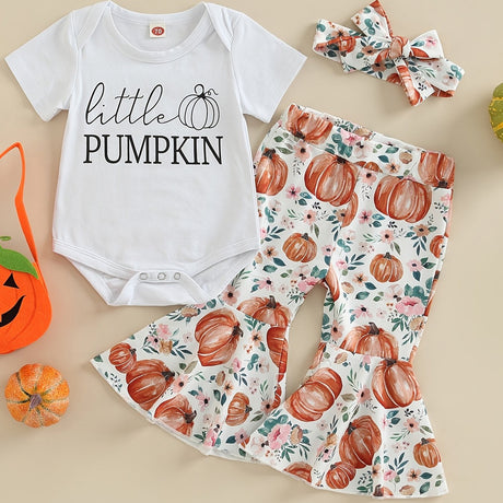 3pcs Pumpkin Floral Print Baby Girl Set: 3-Piece Romper, Bodysuit, Pants & Headband