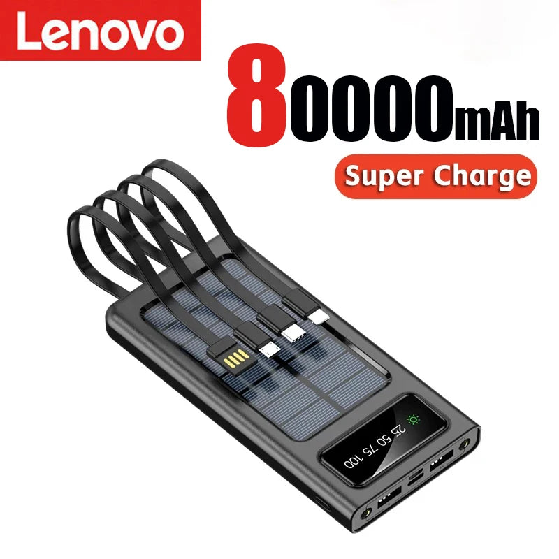 Lenovo 200000mah Large Capacity Solar PowerBank Built 4 Cables Portable Fast Charging Usb Ports Charger Powerbank For All Phones - White 80000mAh is backordered and will ship as soon as it is back in stock.