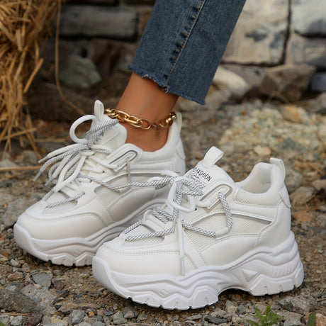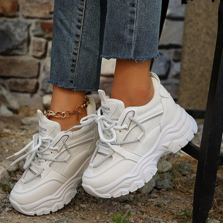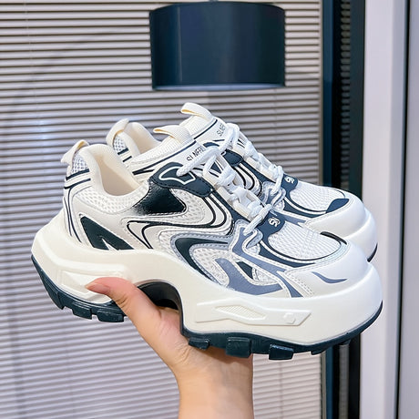 Women's Fashion Trendy Thick Bottom Running Shoes, Versatile Breathable Lace Up Chunky Sneakers