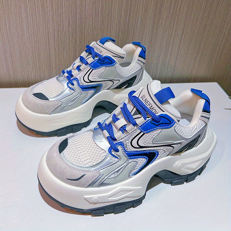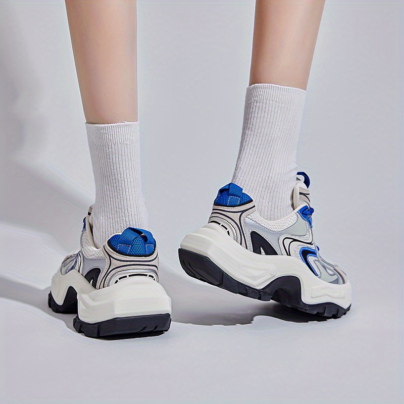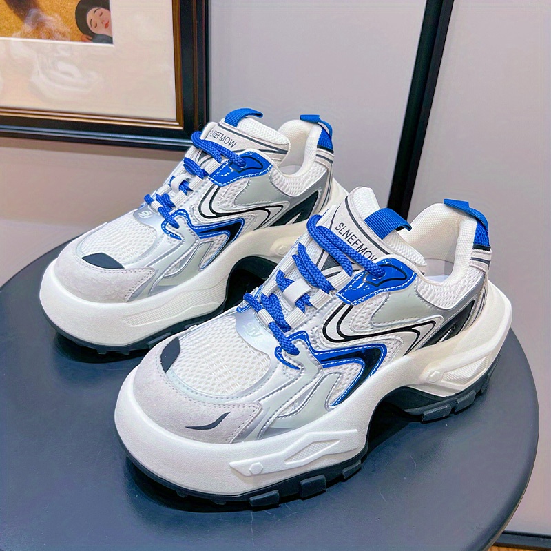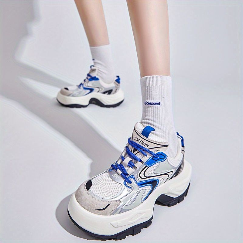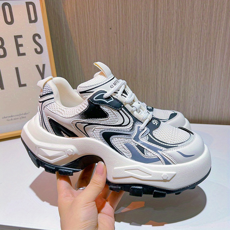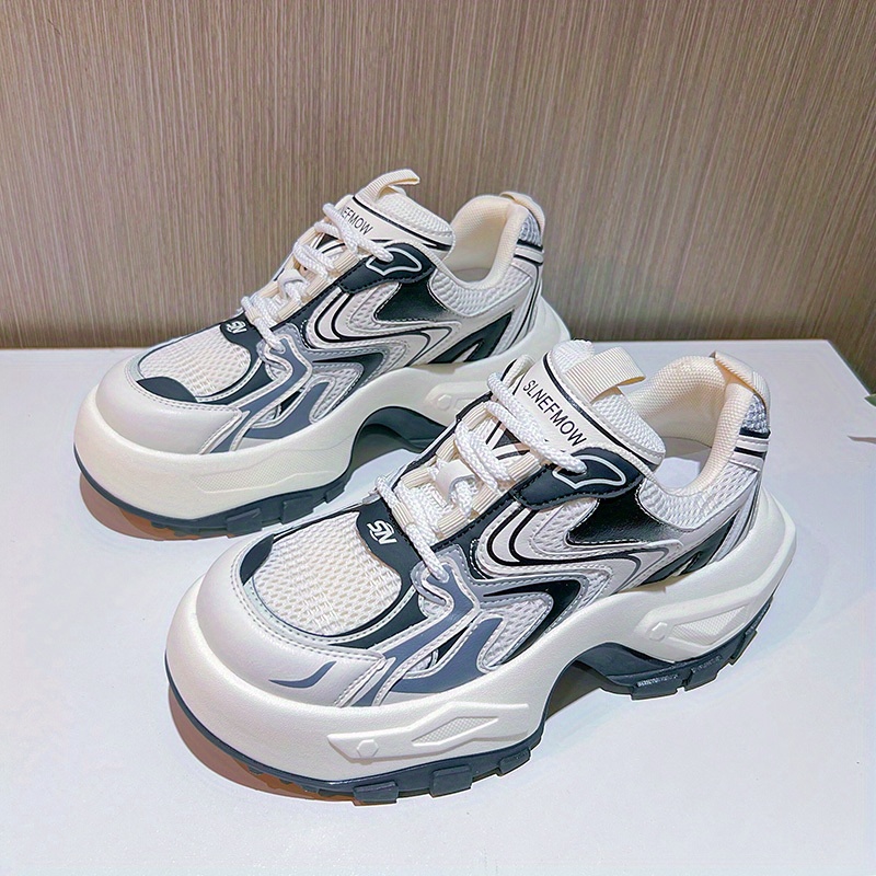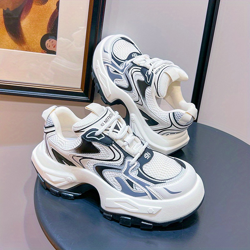 Women's Fashion Trendy Thick Bottom Running Shoes, Versatile Breathable Lace Up Chunky Sneakers