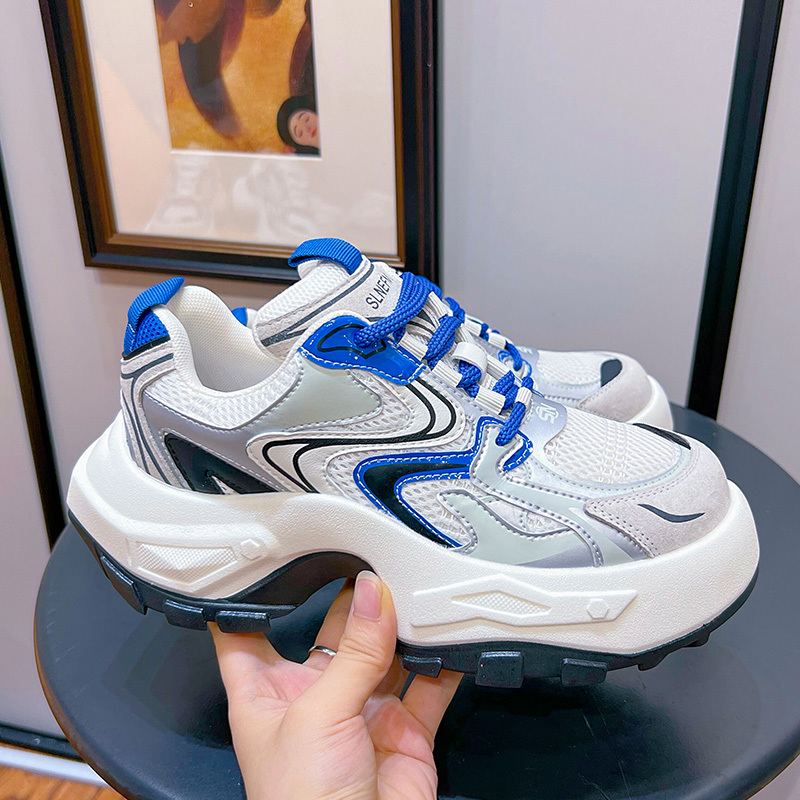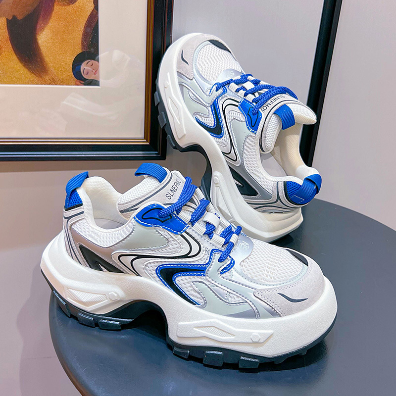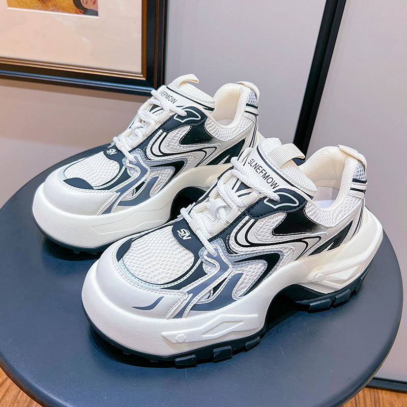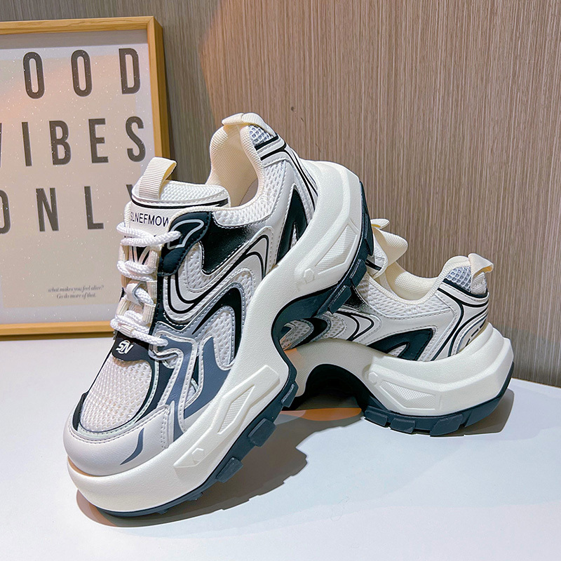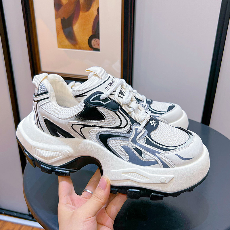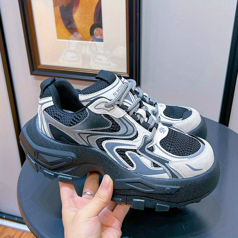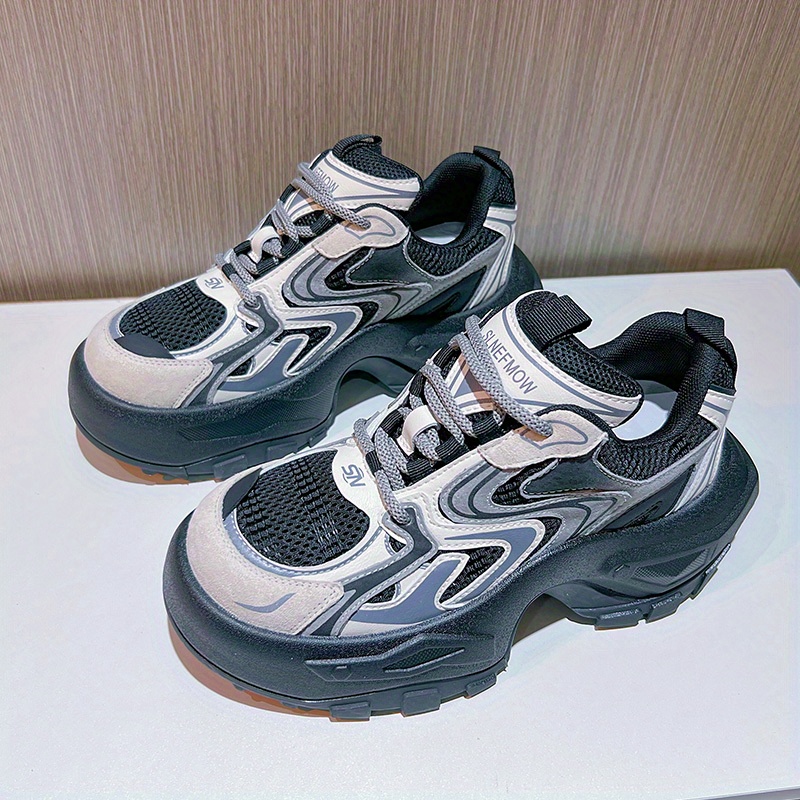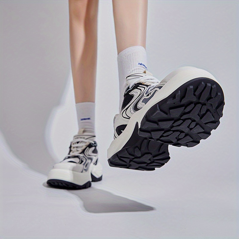 Women's Fashion Trendy Thick Bottom Running Shoes, Versatile Breathable Lace Up Chunky Sneakers