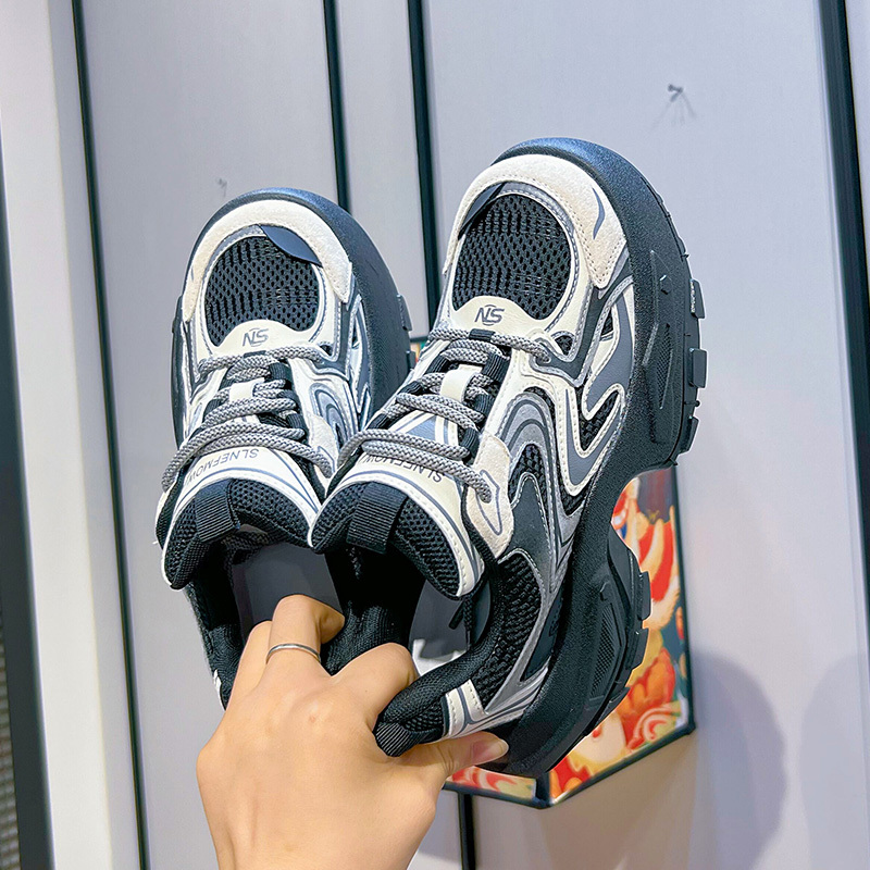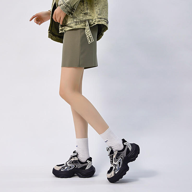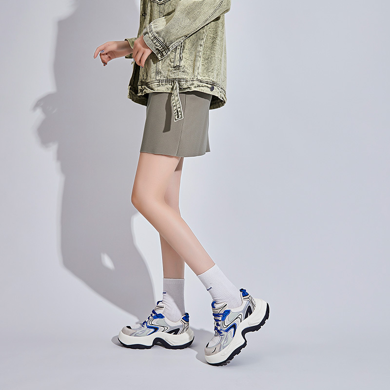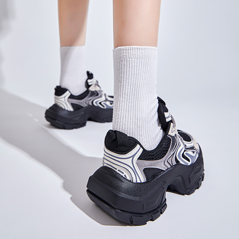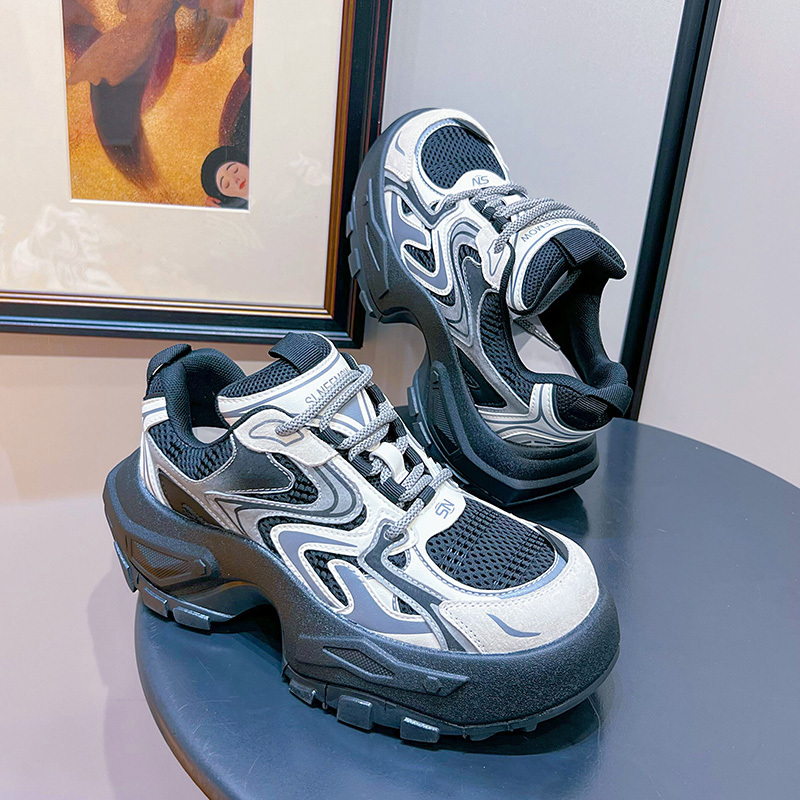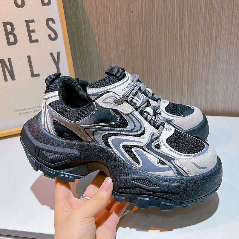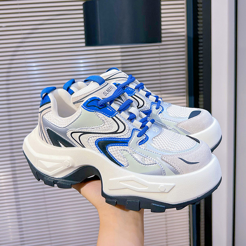 Women's Fashion Trendy Thick Bottom Running Shoes, Versatile Breathable Lace Up Chunky Sneakers