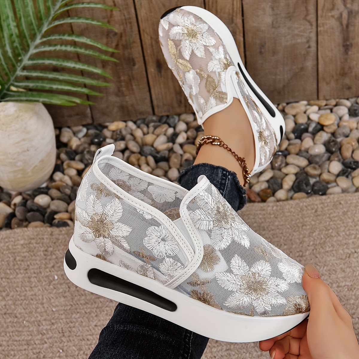 Women's Running Shoes, Mesh Breathable Lightweight Versatile Classic Embroidery Sport Shoes