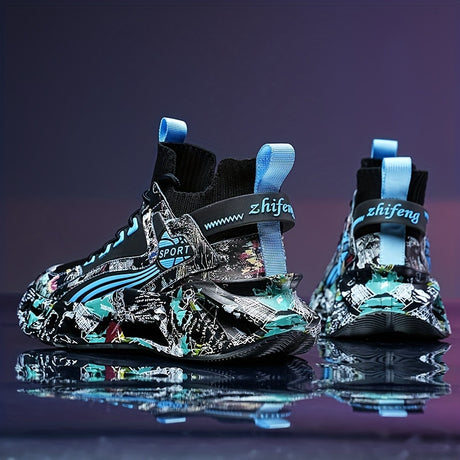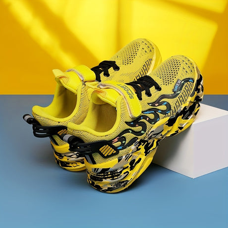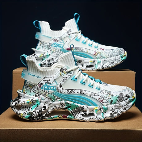 Shock-absorbing Breathable Graffiti Blade Type Men's Lace-up Sneakers - Running Shoes