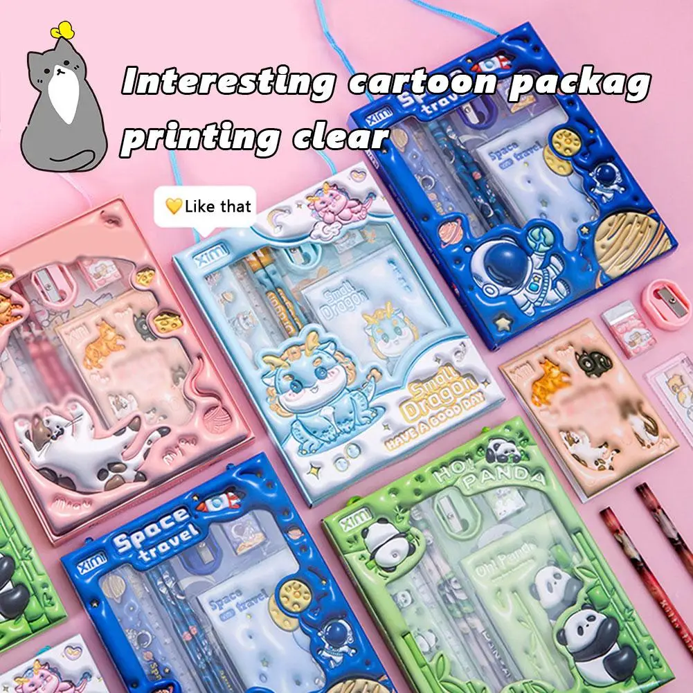 1 Set Cartoon Stationery Set for The Beginning of The School Year Pencil, Notebook,Ruler, Eraser Set Student Stationery Supplies