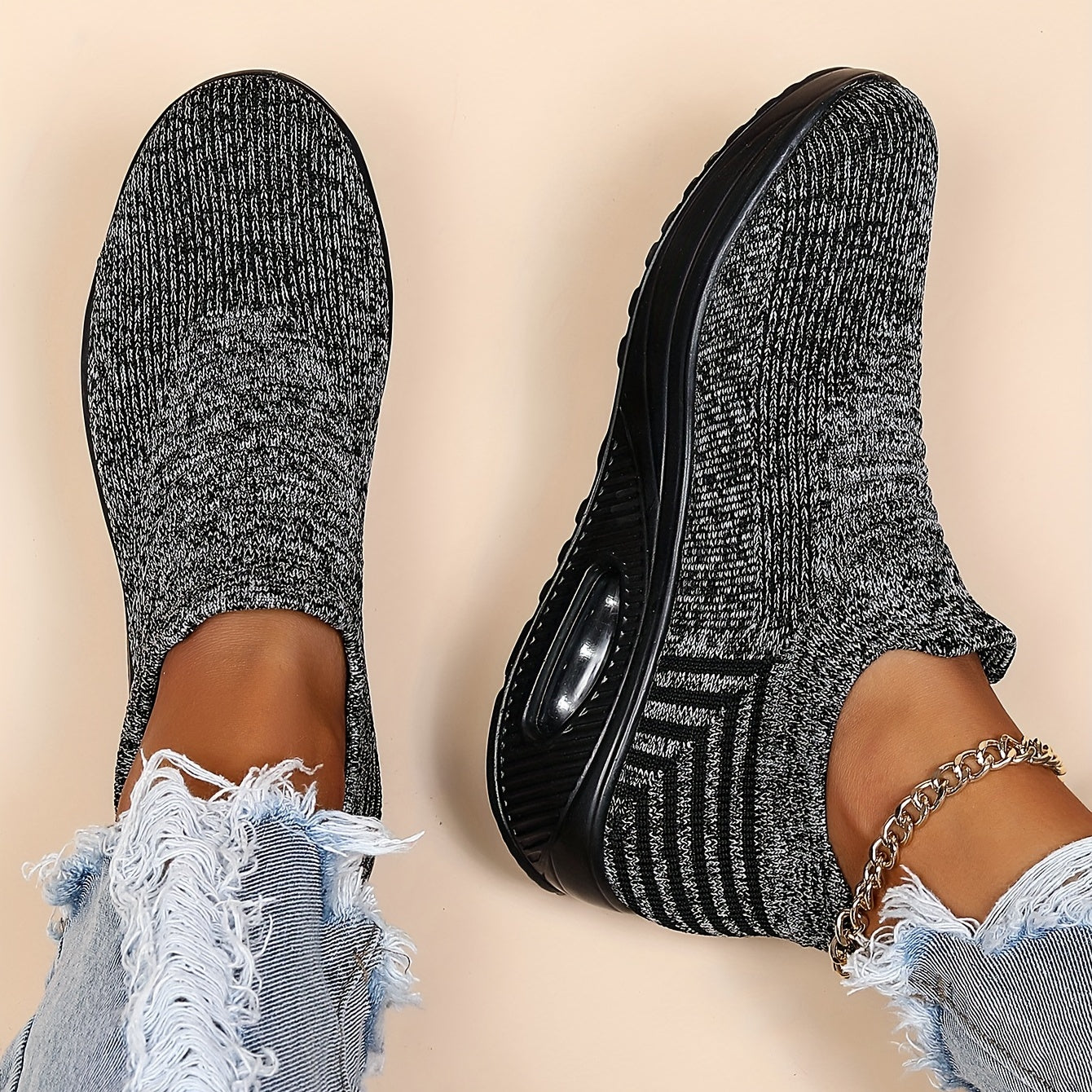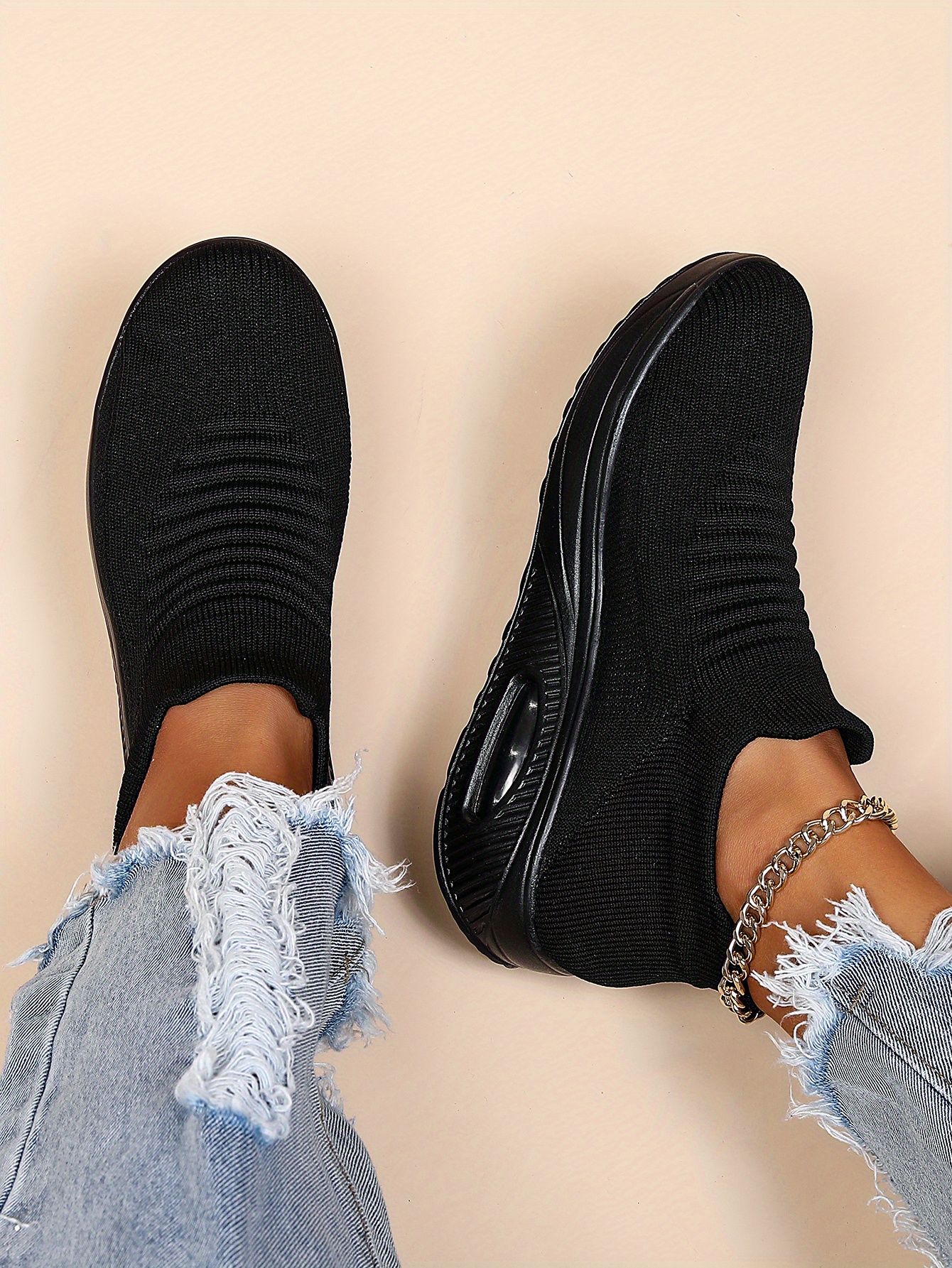 All-Season Women's Lightweight Sneakers - Stabilizing Air Cushion, Slip-On Running Shoes in Sleek Black
