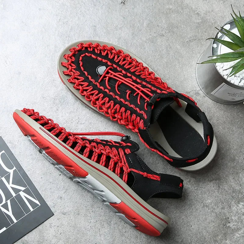 Summer Men Sandals Women Slippers Weaving Design Beach Sandals Breathable Casual Flat Sandals Outdoor Couples Sandals Size 48
