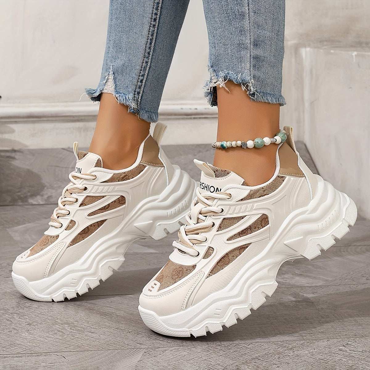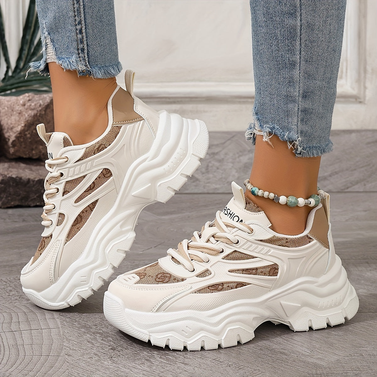 Women's Platform Mesh Sports Shoes, Breathable Lace Up Low Top Running Shoes, Versatile Walking Sneakers - Beige / US 4.5 is backordered and will ship as soon as it is back in stock.