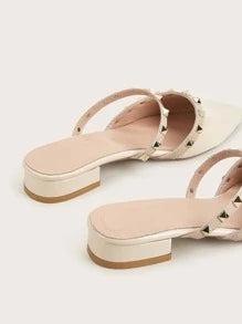 Women's Flat Sandals With Rivets, Thick Heel, Closed Toe Slip-On Mules