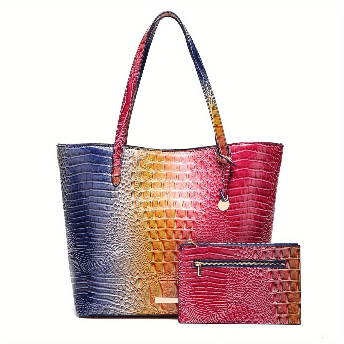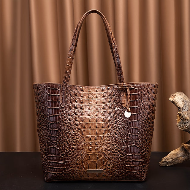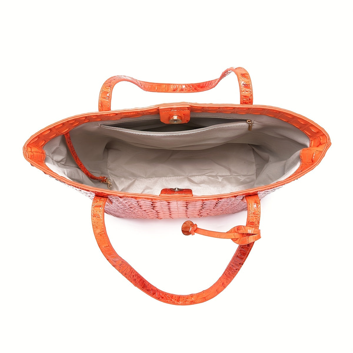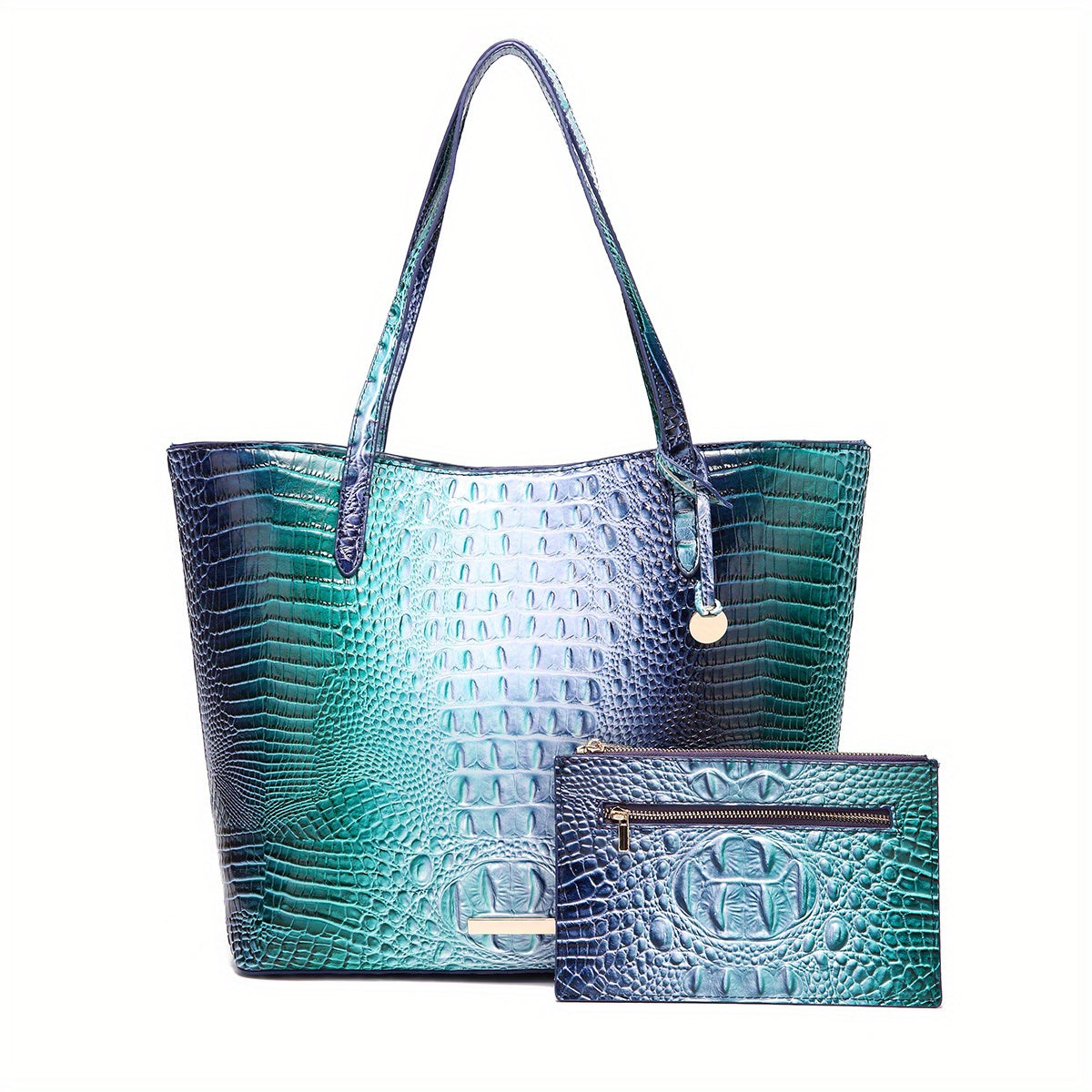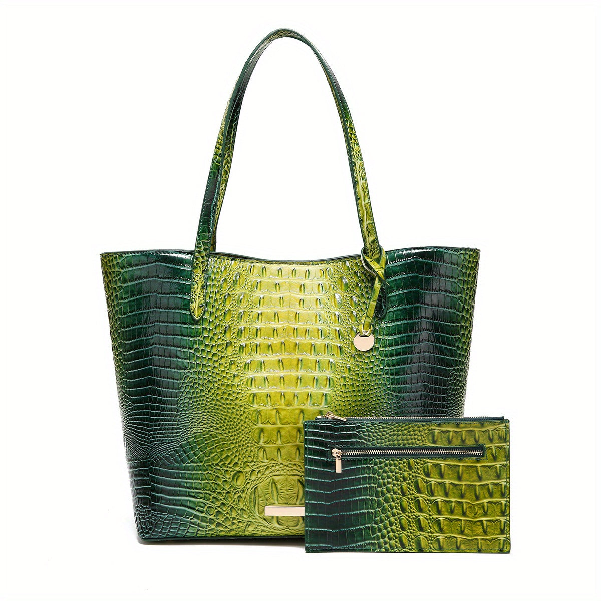 Crocodile Embossed Tote Bag Set, Elegant Shoulder Bag With Clutch Purse, Women's Office & Work Handbag