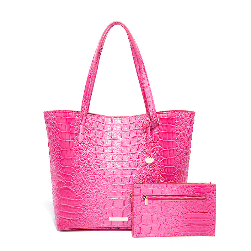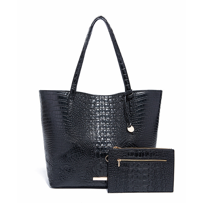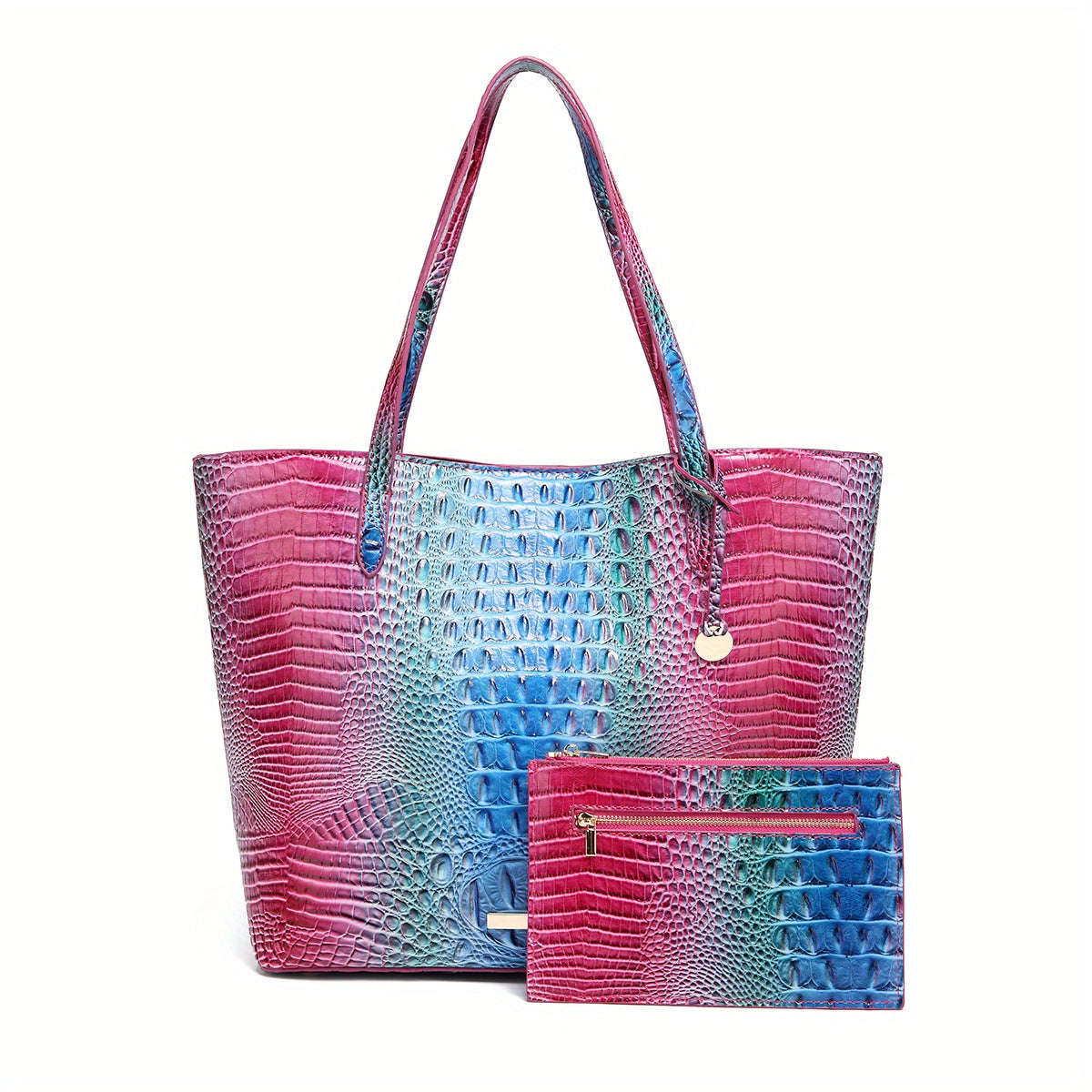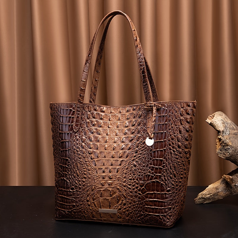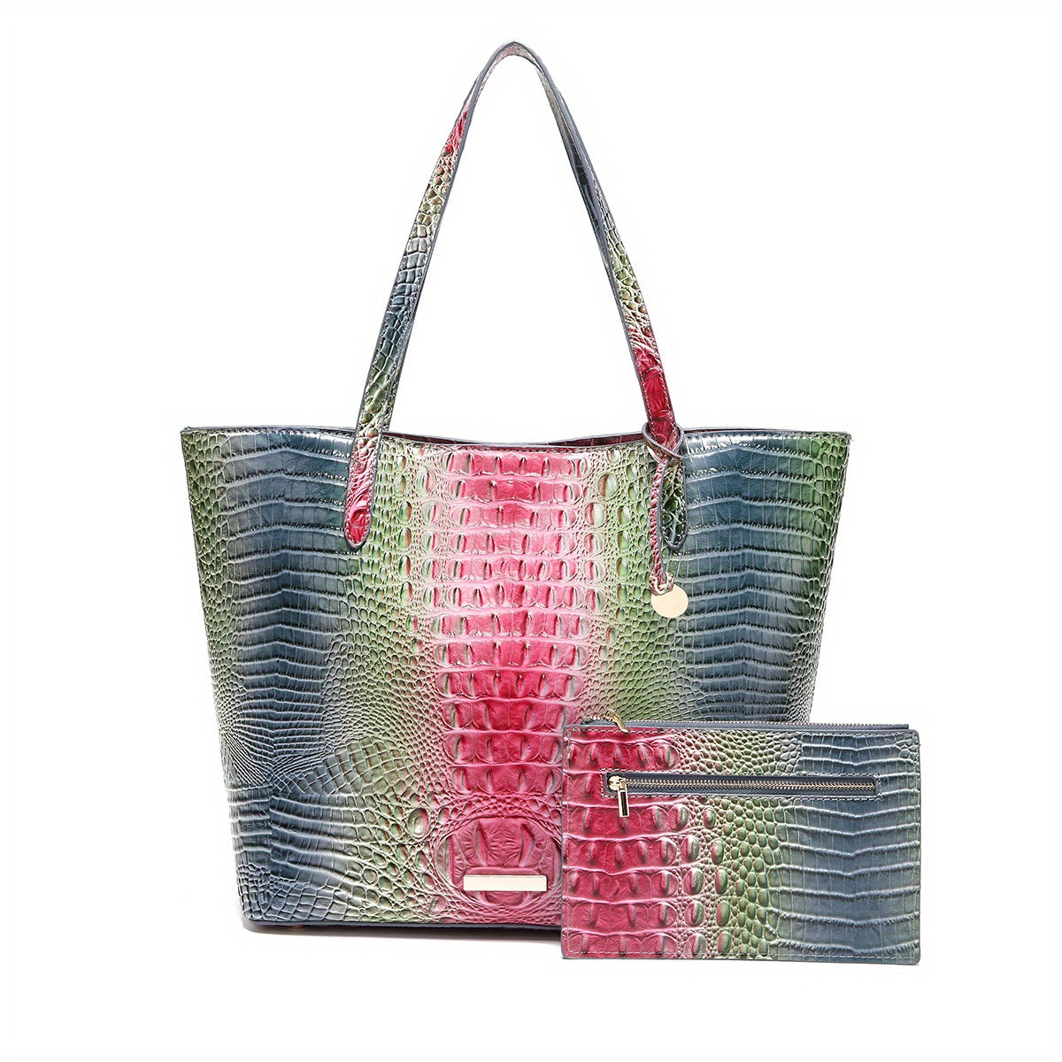 Crocodile Embossed Tote Bag Set, Elegant Shoulder Bag With Clutch Purse, Women's Office & Work Handbag