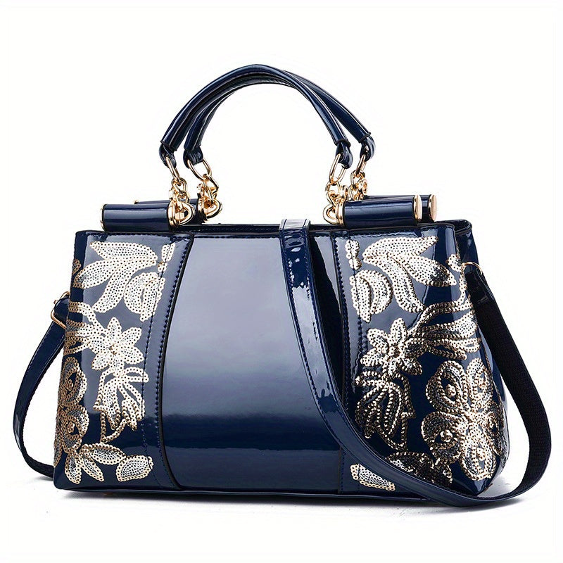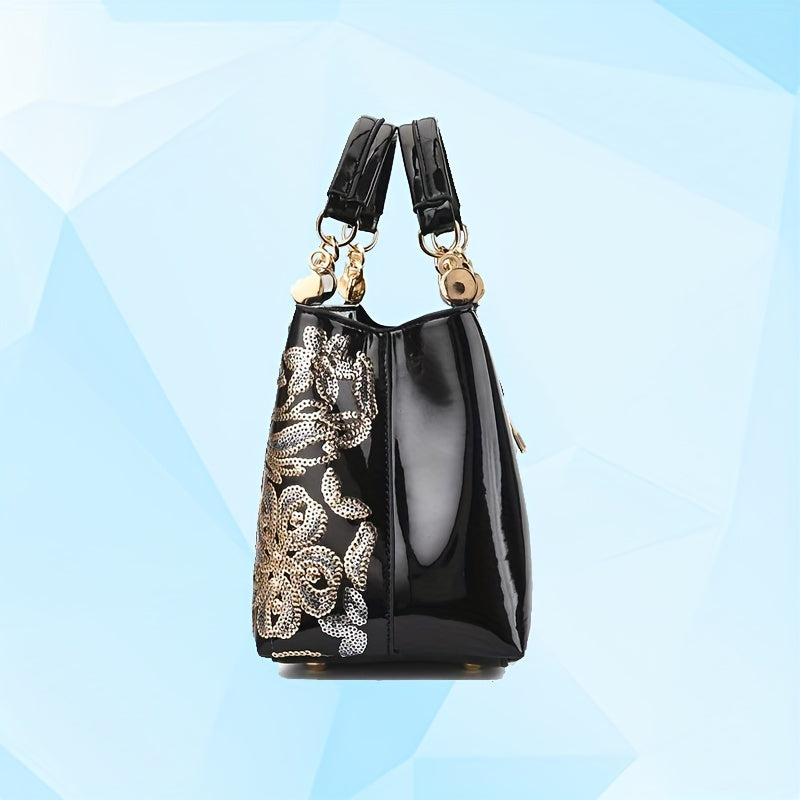 Elegant Sequin Embellished PU Leather Crossbody Handbag - Removable Strap, Water-Resistant, Polyester Lined, Zipper Closure, Perfect for Carnaval and Special Occasions - Ideal Gift for Women