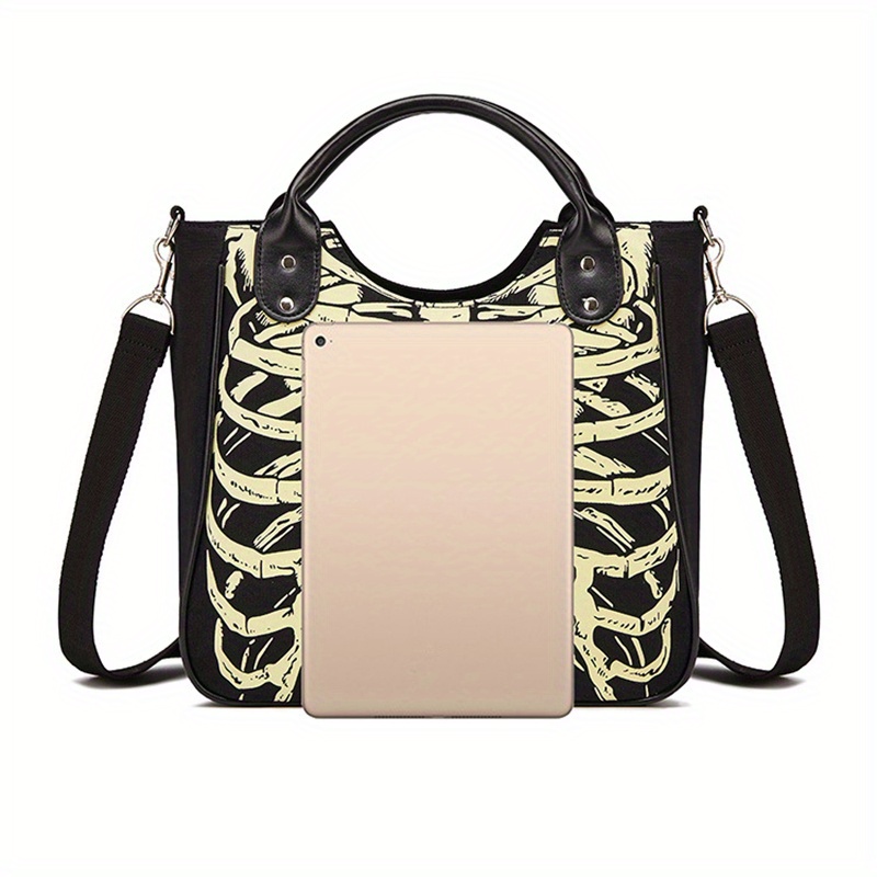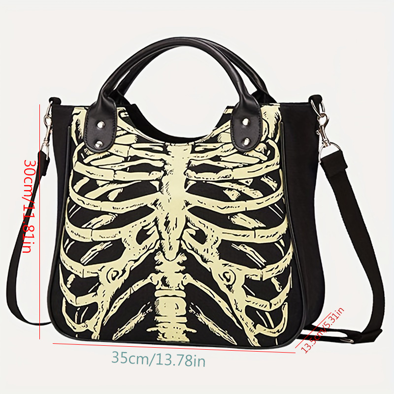 Halloween Skeleton Print Handbag, Luminous Horror Night Canvas Crossbody Bag, Gothic Ghost Skull Elf Tote Bag - Perfect for Carnival Mardi Gras Music Festival