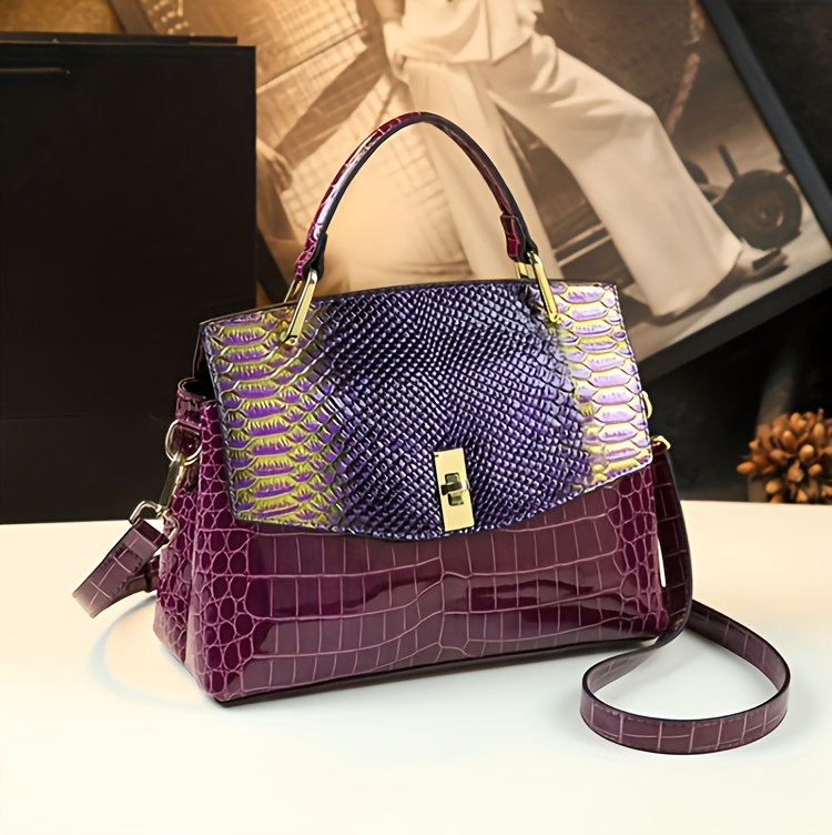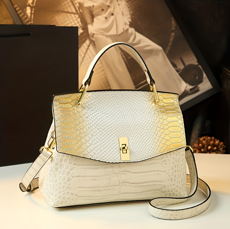Premium Luxury Womens Retro Crocodile Pattern Bag - Stylish Crossbody Satchel with Elegant Top Handle - Versatile Shoulder & Handbag