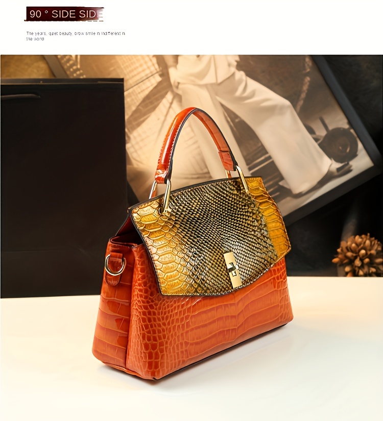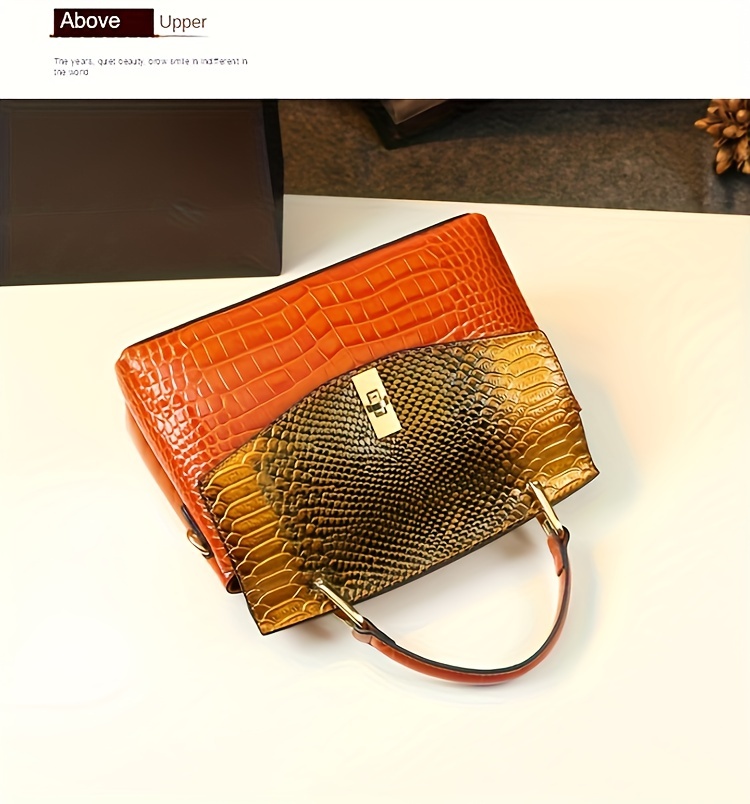 Premium Luxury Womens Retro Crocodile Pattern Bag - Stylish Crossbody Satchel with Elegant Top Handle - Versatile Shoulder & Handbag - Orange is backordered and will ship as soon as it is back in stock.
