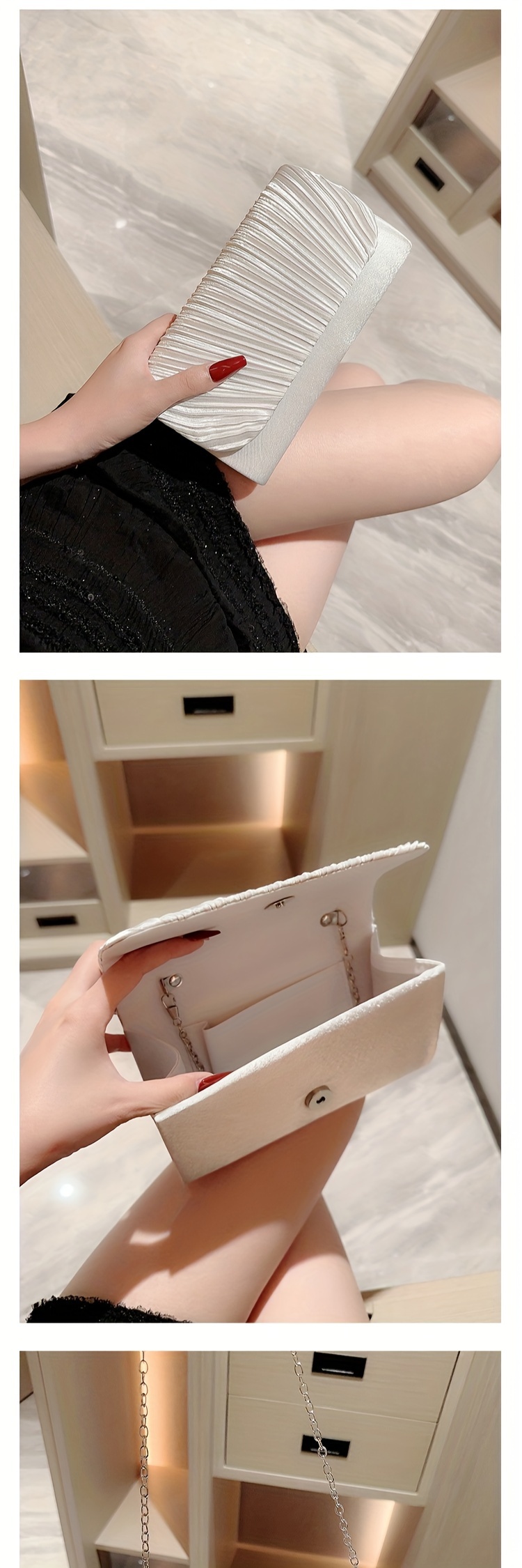 Striped Polyester Evening Clutch Bag with Removable Strap - Elegant Party Accessory for Women with Buckle Closure and Nylon Lining - Versatile Fashion Handbag for Formal Wear - Champagne is backordered and will ship as soon as it is back in stock.